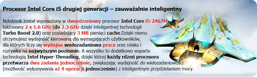 Zobacz więcej dzięki grafice NVIDIA GeForce Notebook posiada dedykowaną kartę graficzna NVIDIA GeForce 640M która zapewnia płynną, szczegółową i realistyczną grafikę w jakości HD. Graj w nowe gry, ciesząc się płynnym wyświetlaniem obrazu w pełnej rozdzielczości HD i z wieloma efektami, jakie zapewnia obsługa bibliotek multimedialnychDirectX 11.![]() ![]() |