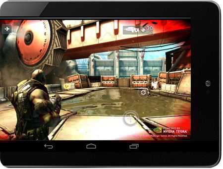 Opracowany z myślą o grach Nexus 7 opracowano z myślą o graczach, którzy muszą się przemieszczać. Wyposażono go w 4-rdzeniowy procesor NVIDIA Tegra 3 o taktowaniu 4 x 1.2 GHz (1.3 w trybie pracy jednego rdzenia), dzięki czemu szybciej ładują się strony internetowe, gry działają znacznie płynniej, a jednoczesne uruchamianie wielu aplikacji nie sprawia żadnych problemów.12-rdzeniowy procesor graficzny GeForce zapewnia doskonałą jakość grafiki, a opatentowany design procesora 4-PLUS-1 zapewnia maksymalne osiągi oraz oszczędność energii. Dzięki czterem rdzeniom, 10-punktowemu ekranowi wielodotykowemu, żyroskopowi i akcelerometrowi możesz podbijać rankingi graczy i swobodnie odkrywać dowolne z ponad 600 000 aplikacji i gier dostępnych poprzez Google Play. |
