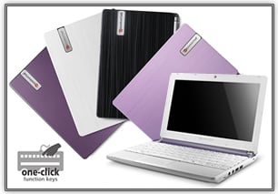 Inspirowany naturą Ze względu na elegancki, ekskluzywny styl oraz efektowne kolory inspirowane naturą, nowa kolekcja netbooków dot s natychmiast przyciąga wzrok. Netbooki te mają także wspaniałe walory użytkowe, w tym 8-godzinny czas pracy bateryjnej, czy atrakcyjne akcesoria, takie jak zasilacz podłączany bezpośrednio do gniazdka sieciowego, który ułatwia życie w podróży. |