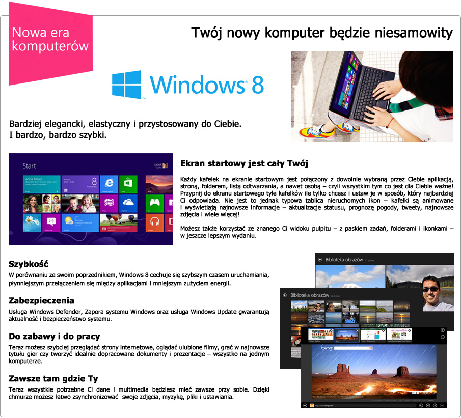 Niesamowita wydajność i wspaniała grafika w najlepszym wydaniu. Najwyższa wydajność do obsługi najbardziej wymagających zadań dzięki procesorom Intel czwartej generacji - obsługa grafiki HD i 3D, wielozadaniowość i multimedia – są przetwarzane przez procesory Intel Core i7 w sposób, który zauważysz i poczujesz. Inteligentna wielozadaniowość, zasługa technologii Intel Hyper-Threading, umożliwia płynne korzystanie z kilku aplikacji. Za automatyczne przyśpieszanie pracy procesora w razie potrzeby odpowiada technologia Intel Turbo Boost 2.0. |