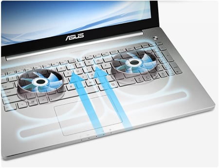 System chłodzenia wykorzystujący dwa wentylatory Notebooki z serii N wyposażono w dwa wentylatory, dwa przewody cieplne i duże otwory wentylacyjne, dzięki czemuzapewnia niską temperaturę pracy nawet w najbardziej ekstremalnych sytuacjach, gwarantując wysoką stabilność. Duże otwory wentylacyjne usuwają ciepło poprzez tylną część notebooka, zapewniając cichsze i chłodniejsze środowisko przekładające się na stabilne działanie nawet przy wysokich obciążeniach systemu podczas gry i korzystania z wymagających aplikacji. |
