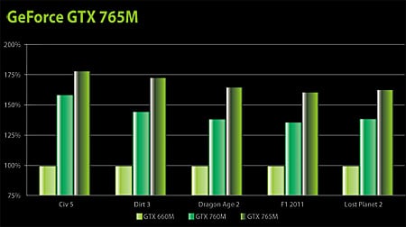 Odkryj w swoich ulubionych grach PC – dzięki kartom graficznym NVIDIA® GeForce® z serii GT 700M – bardziej szczegółowo odwzorowane, superrealistyczne efekty specjalne i graj w wyższych rozdzielczościach. Karty graficzne GeForce z serii GT 700M, oparte na nagradzanej architekturze NVIDIA® Kepler™, zapewniają nawet o 75% wyższą wydajność w grach niż karty poprzedniej generacji z serii GeForce GT 600M.