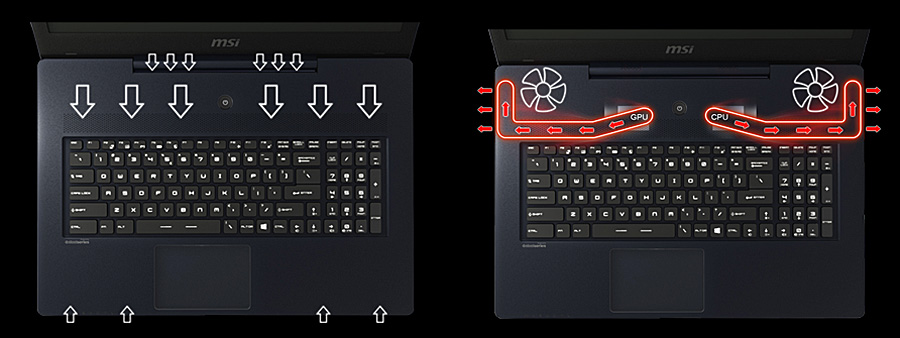 ![]() Niezwykle ciche i podwójne wentylatory chłodzenia zapewniają optymalną temperaturę wewnątrz laptopa. Automatyczna funkcja Cooler Boost inteligentnie reguluje przepływ powietrza podczas ekstramalnego grania, aby utrzymać odpowiedni chłód w samym ogniu walki. |