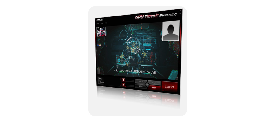 Narzędzie GPU Tweak do strumieniowania pozwala na dzielenie się na bieżąco tym, co dzieje się na ekranie, więc inni mogą na żywo obserwować rozgrywki. Do okna strumieniowania można nawet dodać przesuwający się tekst, obrazy i zdjęcia z kamery internetowej.