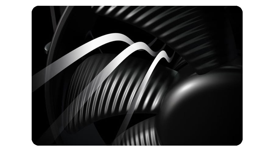 - Zaawansowane łożyskowanie typu fluid dynamic bearing (FDB) pozwala zminimalizować tarcia mechaniczne pomiędzy rotorem wentylatora a obudowa co skutkuje wyjątkowo niskim poziomem głośności