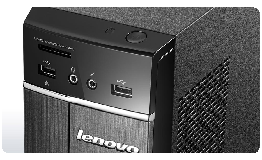 Lenovo H30 jest o połowę mniejszy od standardowych komputerów stacjonarnych. Niewielkie rozmiary H30 pozwalają utrzymać miejsce pracy w porządku, a stylowa, przyjemna w dotyku obudowa ze szczotkowanego metalu z pewnością będzie ozdobą każdego biurka.