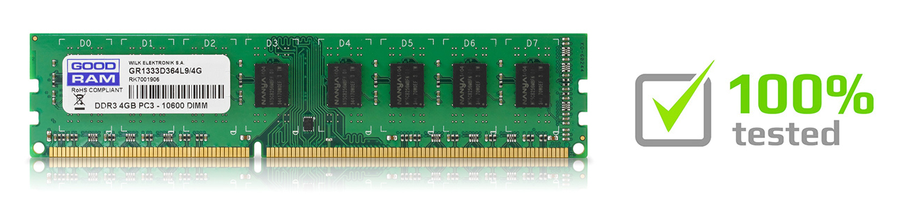 W celu zapewnienia najwyższej jakości modułów pamięci marki GOODRAM, producent współpracuje jedynie z najlepszymi dostawcami komponentów, a w produkcji modułów pamięci stosuje wyselekcjonowane kości pamięci światowych marek.