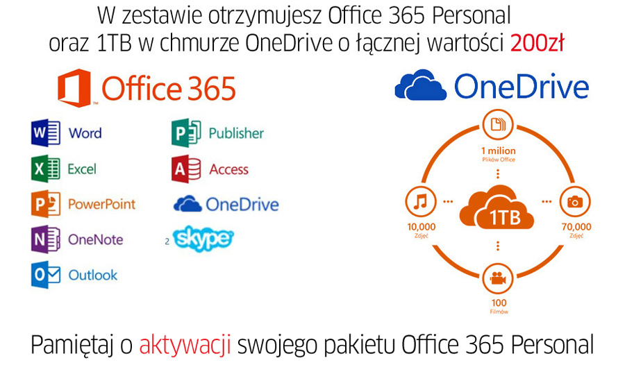 Zainstalowany pakiet MS Office pomoże Ci w edycji najczęściej używanych dokumentów w pracy biurowej. Będziesz miał gwarancję, że edytowane pliki pozostaną kompatybilne z innymi komputerami PC. Po dodatkowe programy możesz sięgnąć za pomocą aplikacji Sklep. |