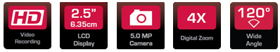 Nowa technika rejestracji obrazu o rzeczywistej jakości HD (720p) dzięki matrycy CMOS HD i trzywarstwowemu obiektywowi. Podgląd i odtwarzanie na ekranie LDC 2”. Kamera umożliwia zapisywanie filmów na karcie SD po pojemności do 32 GB oraz odtwarzanie zapisu w czasie rzeczywistym ze wskazaniem rzeczywistej daty i godziny. Automatyczna regulacja czułości do oświetlenia zapewnia doskonałe, ostrzejsze obrazy nawet w warunkach słabego oświetlenia. Wideorejestrator charakteryzuje się ogromną tolerancją temperatury: można z niego korzystać w temperaturze od -35 do +70 °C.
