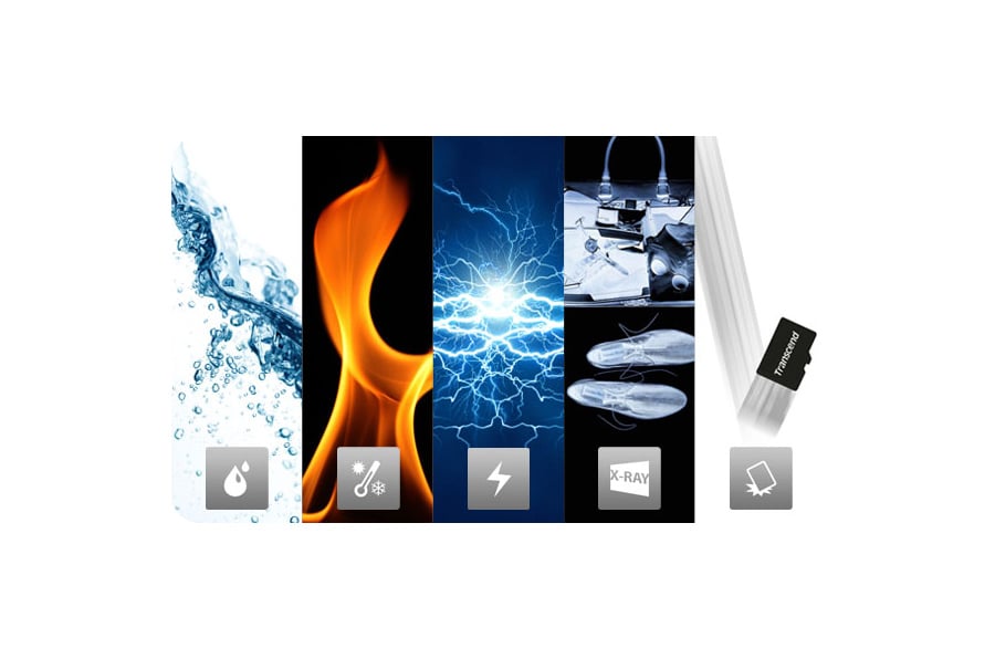 - Wodoodporność - karty spełniają standard IPX7, mogą być zanurzone w wodzie na głębokości 1 metra do 30 minut