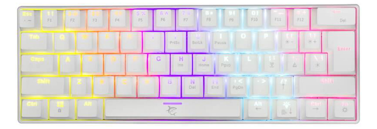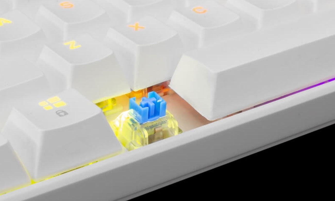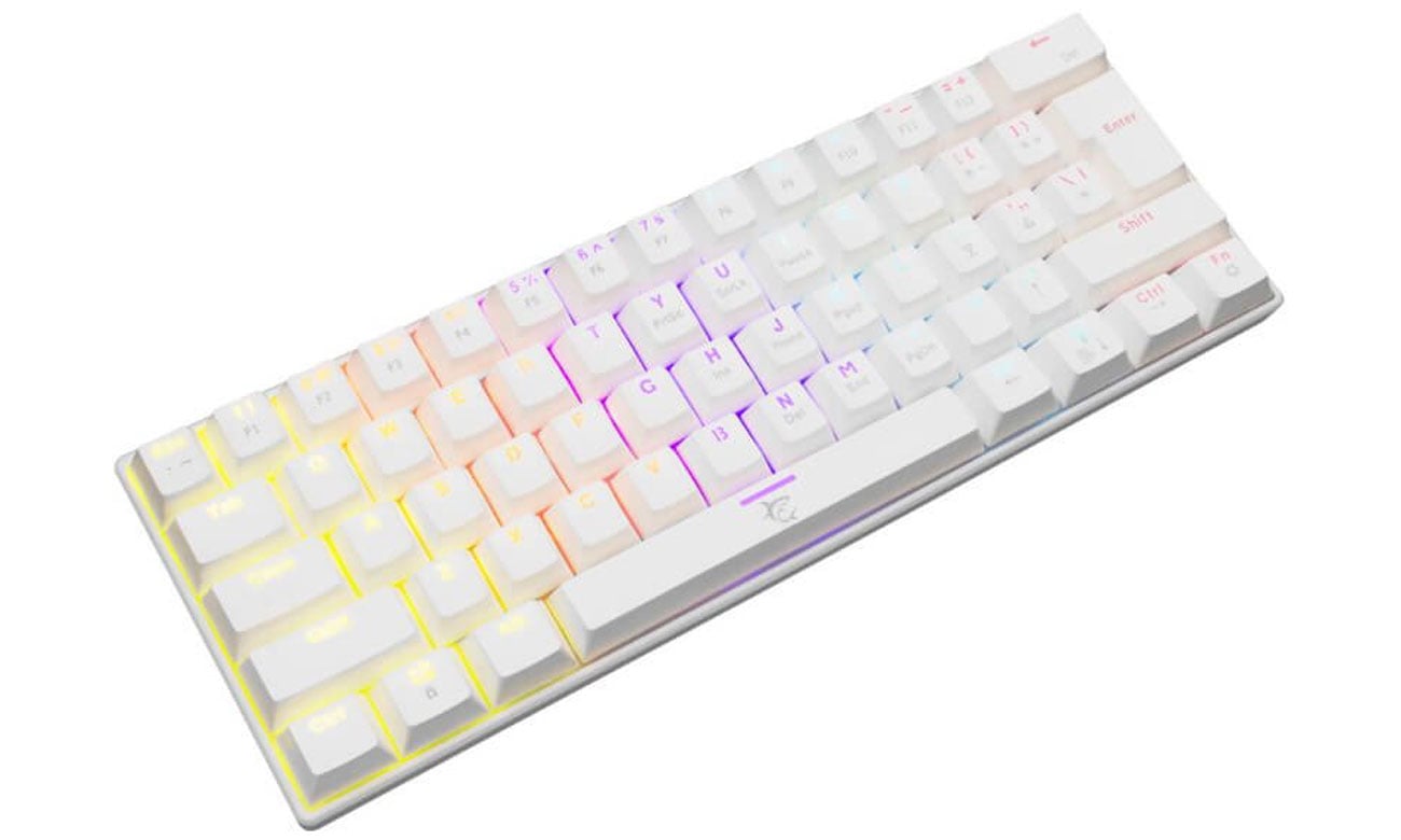 Przewodowa klawiatura gamingowa WhiteShark SHINOBI w kolorze białym to niepełnowymiarowa klawiatura o układzie 60% — nie ma panelu numerycznego. Została wyposażona w 61 klawiszy z niebieskimi przełącznikami mechanicznymi OUTEMU, które gwarantują żywotność na poziomie ponad 50 mln naciśnięć. Co więcej, wszystkie klawisze mają przypisaną funkcję anti-ghosting. Zapobiega ona więc rejestrowaniu dodatkowych klawiszy w chwili naciśnięcia kilku klawiszy jednocześnie.