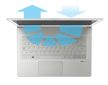Dotyk Wyraźny ekran Full HD komputera Aspire S7 wyświetla wszystkie szczegóły, a wyświetlacz obsługujący 10 punktów dotyku umożliwia pełną kontrolę. Kąt otwarcia 180 stopni pozwala rozłożyć płasko ten Ultrabook i korzystać z niego z obu stron — to doskonałe rozwiązanie do pracy zespołowej. Poblask Możesz zawsze liczyć na odpowiednie światło — w parku, autobusie, na kempingu lub w każdym ciemnym miejscu: elektroluminescencyjne podświetlenie klawiatury komputera Aspire S7 włącza się automatycznie, dopasowując natężenie do oświetlenia otoczenia i zapewniając wygodę dla oczu. ![]() Niska temperatura Nawet podczas ciężkiej pracy komputer Aspire S7 pozostaje chłodny, ponieważ jeden wentylator pobiera zimne powietrze, a drugi uwalnia nagrzane powietrze. Ta inteligentna technologia zapewnia wygodę i przyjemność podczas korzystania z komputera Ultrabook, kiedy trzymasz go na kolanach lub opierasz ręce na obudowie. |