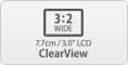 Na tylnej obudowie aparatu znajduje się ekran LCD Clear View o przekątnej 7,7 cm. Służy on do uzyskiwania dostępu do poleceń menu, przeglądania obrazów oraz kadrowania podczas robienia zdjęć i nagrywania filmów z zastosowaniem funkcji Live View. Kąt patrzenia około 170° zapewnia dokładne odwzorowanie kolorów bez względu na kąt patrzenia na ekran. Odbijanie światła jest ograniczone przez zastosowanie optycznego polimeru, który wypełnia przestrzeń pomiędzy ekranem a jego ochronną osłoną ze wzmacnianego szkła.