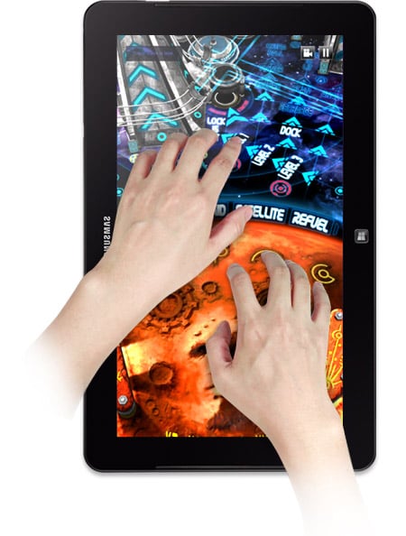 Łatwe sterowanie Zaawansowana obsługa 10-punktowego wielodotyku stanowi przełom technologiczny w interaktywności, przewyższając tradycyjne ekrany obsługiwane dwoma palcami i zapewniając pełną kontrolę przy użyciu wszystkich 10 palców. Zwiększona czułość pozwala użytkownikom na korzystanie z opcji powiększania pinch-to-zoom, obracania obrazów oraz łatwego przewijania stron w celu wykorzystania wszystkich możliwości aplikacji. Pełen obraz S Camera w pełni wykorzystuje zalety tylnej kamery internetowej o rozdzielczości 5 megapikseli podczas robienia zdjęć lub nagrywania filmów. Do specjalnych funkcji należy m.in. opcja podwójnego aparatu, umożliwiająca robienie zdjęć zarówno z przodu, jak i z tyłu urządzenia. S Cameraobsługuje także tryby edycji wstępnej, aby oszczędzić ci pracy związanej z późniejszą obróbką zdjęć. Udostępniaj i odtwarzaj zasoby w dowolnym miejscu AllShare Play sprawia, że oglądanie i udostępnianie zdjęć, utworów muzycznych, filmów, dokumentów i plików jest wyjątkowo proste. Aplikacja umożliwia bezprzewodowy dostęp do dowolnych treści, ich odtwarzanie, a także przesyłanie z jednego urządzenia na drugie, do pamięci sieciowej lub witryny internetowej, dzięki czemu nigdy już nie zabraknie ci miejsca na dysku. Dodatkowo nie potrzebujesz już żadnych kabli ani nośników USB, aby zdalnie oglądać swoje zasoby w dowolnym miejscu! |