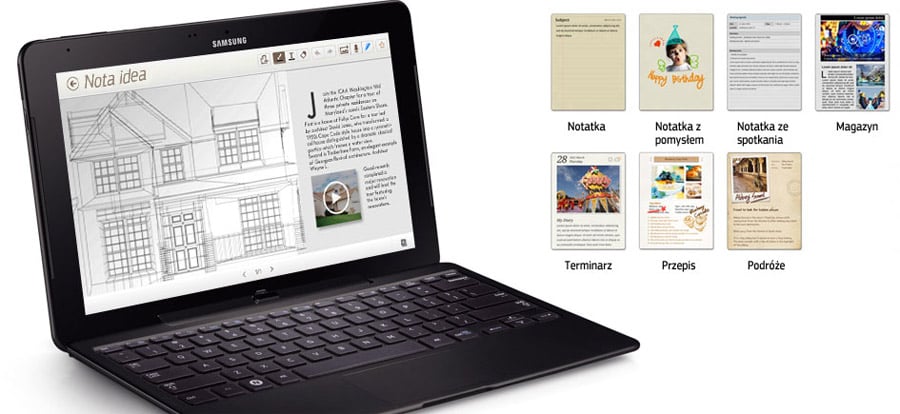 Już nigdy więcej nie przegapisz czegoś ciekawego Za pomocą aplikacji S Note możesz łatwo sporządzać notatki, rysować, a także aktualizować informacje zarówno w ruchu, jak i na stojąco. Różne tryby wprowadzania danych (z klawiatury, pisanie, rozpoznawanie pisma odręcznego) sprawiają, że obsługa aplikacji jest prosta i intuicyjna, a jednocześnie zapewnia najbardziej zaawansowany sposób sporządzania notatek przy użyciu rysika S Pen. W aplikacji dostępny jest wybór szablonów ułatwiających szybkie tworzenie różnych dokumentów i rysunków. |