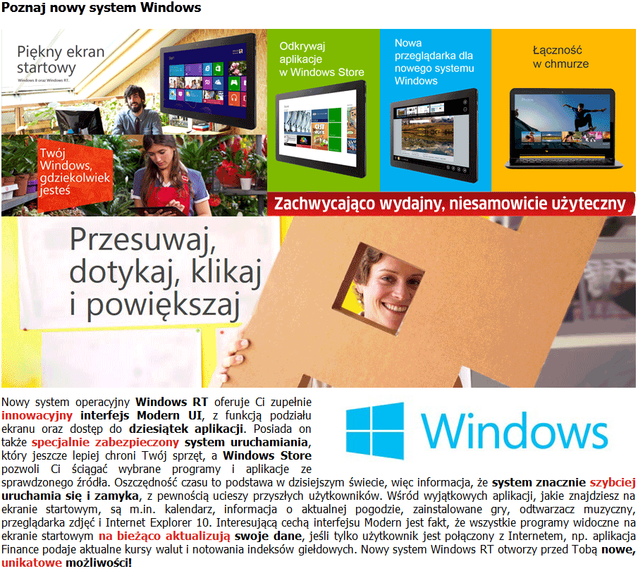 Nowy pakiet Office 2013 Pierwszą rzeczą widoczną po otwarciu pakietu Microsoft Office jest przejrzysty, nowy wygląd. Jednak funkcje, które znasz i z których korzystasz, są wciąż obecne. Towarzyszą im też nowe funkcje stworzone z myślą o oszczędzaniu Twojego czasu. Nowy pakiet Office współdziała też z chmurą. Teraz zawsze masz dostęp do swoich ważnych plików, niezależnie od tego, gdzie jesteś i z jakiego urządzenia korzystasz. |