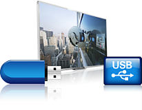 Podłącz nośnik pamięci USB, aparat cyfrowy, odtwarzacz MP3 lub inne urządzenie multimedialne do złącza USB z boku telewizora, aby oglądać zdjęcia i filmy oraz słuchać muzyki, korzystając z łatwej w obsłudze ekranowej przeglądarki. |