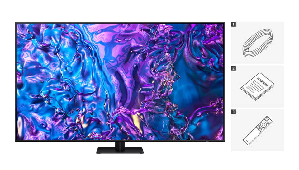 Z telewizorem Samsung Q70D otrzymujesz: Pilot SolarCell, kabel zasilający, instrukcję obsługi.