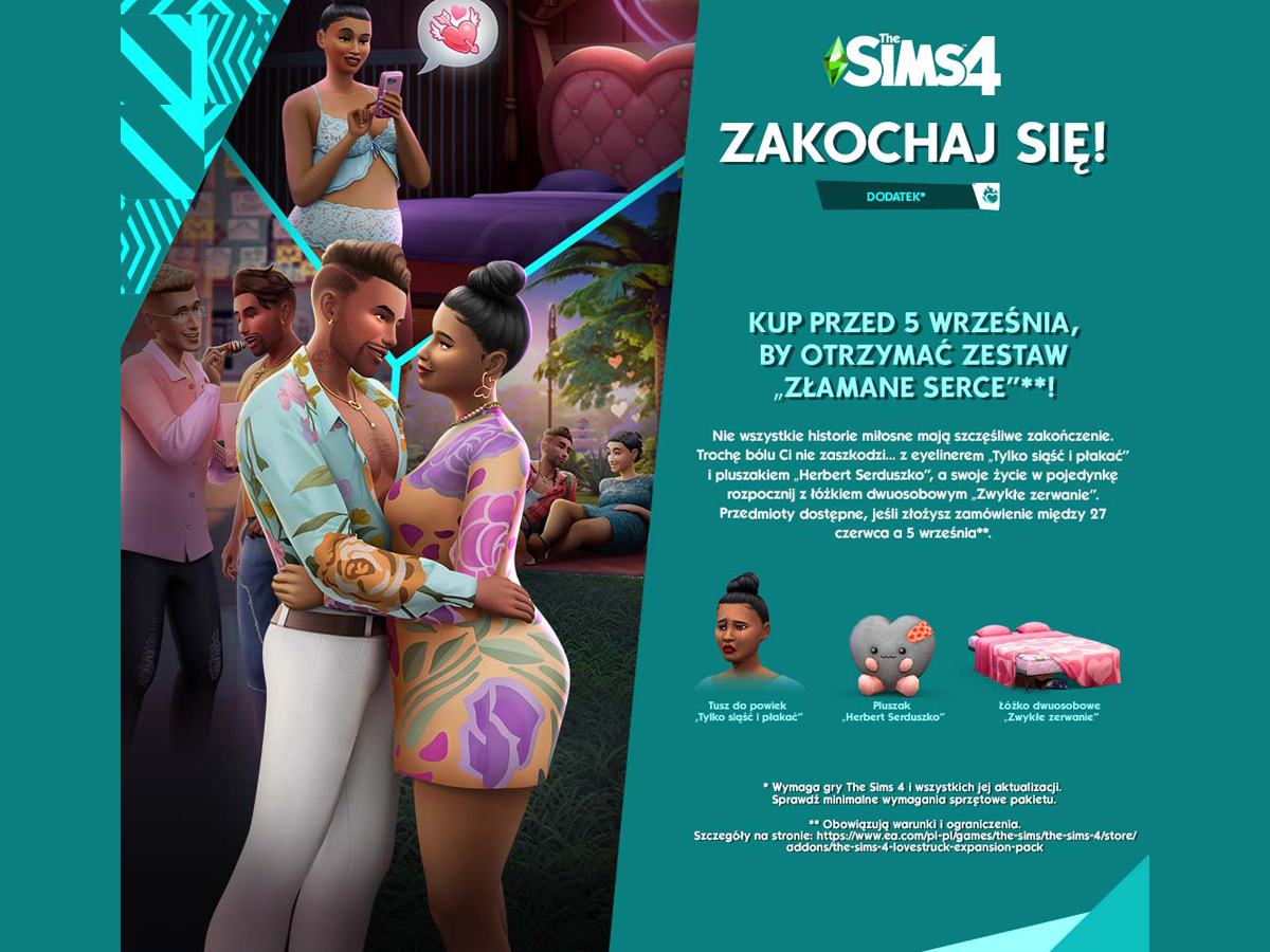 *Obowiązują warunki i ograniczenia. Szczegóły na stronie: https://www.ea.com/pl/games/the-sims/the-sims-4/store/addons/the-sims-4-lovestruck-expansion-pack.