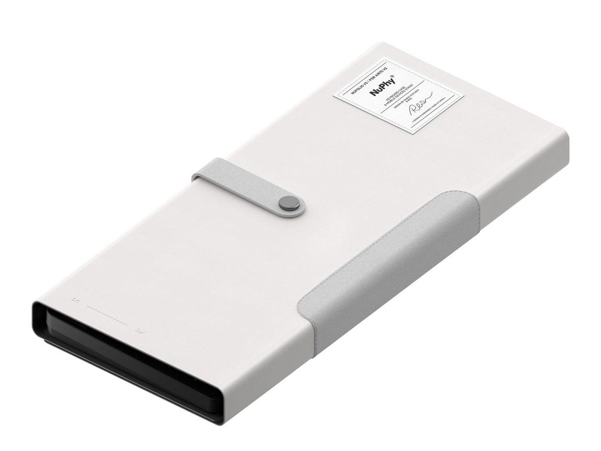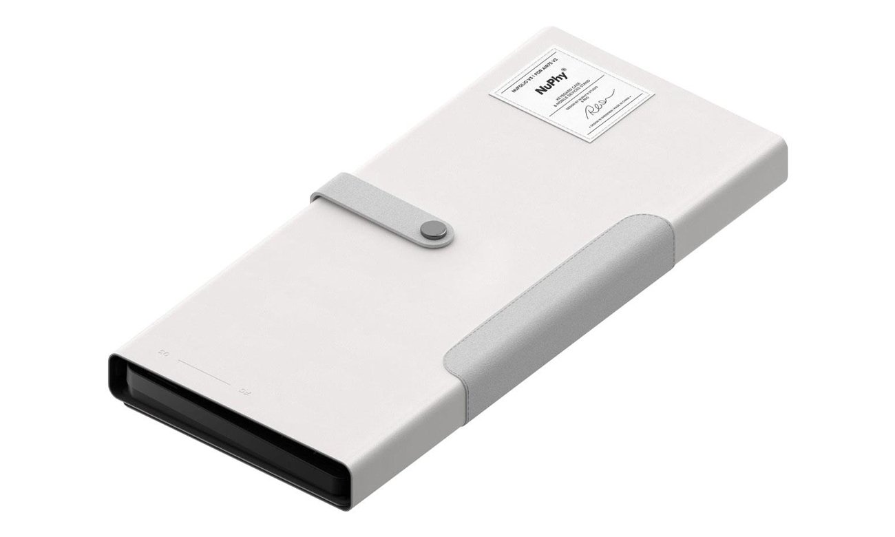 Nuphy NuFolio V3 do Air75 V2 może nie tylko chronić klawiaturę, ale po rozpięciu i złożeniu może również stać się stojakiem, wspierając zarówno tablet, jak i telefon. W dolnej części NuFolio Nuphy umieściło również magnes, dzięki czemu będzie on pewnie przymocowany do metalowej płytki z tyłu klawiatury.