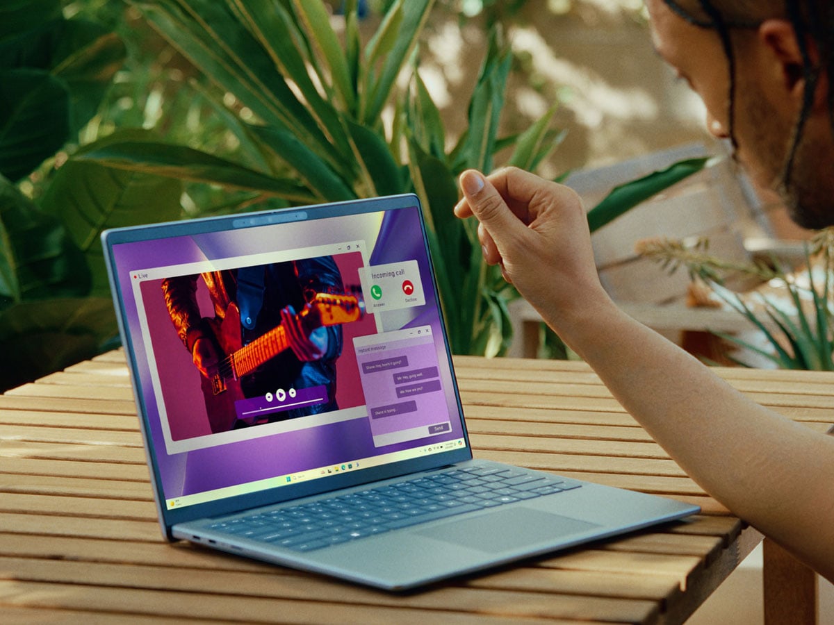Czytaj komfortowo i przewijaj mniej, ponieważ ten panel w proporcjach 16:10 zapewnia więcej przestrzeni w pionie. Ciesz się żywymi detalami dzięki wysokiej rozdzielczości i jasności na poziomie 400 nitów. Windows Auto Super Resolution używa AI do skalowania gier w czasie rzeczywistym, zapewniając płynne strumieniowanie i rozgrywkę. Podwójne mikrofony wyraźnie odbierają polecenia głosowe, a głośniki z inteligentnymi wzmacniaczami zapewniają bogate doświadczenie dźwiękowe.