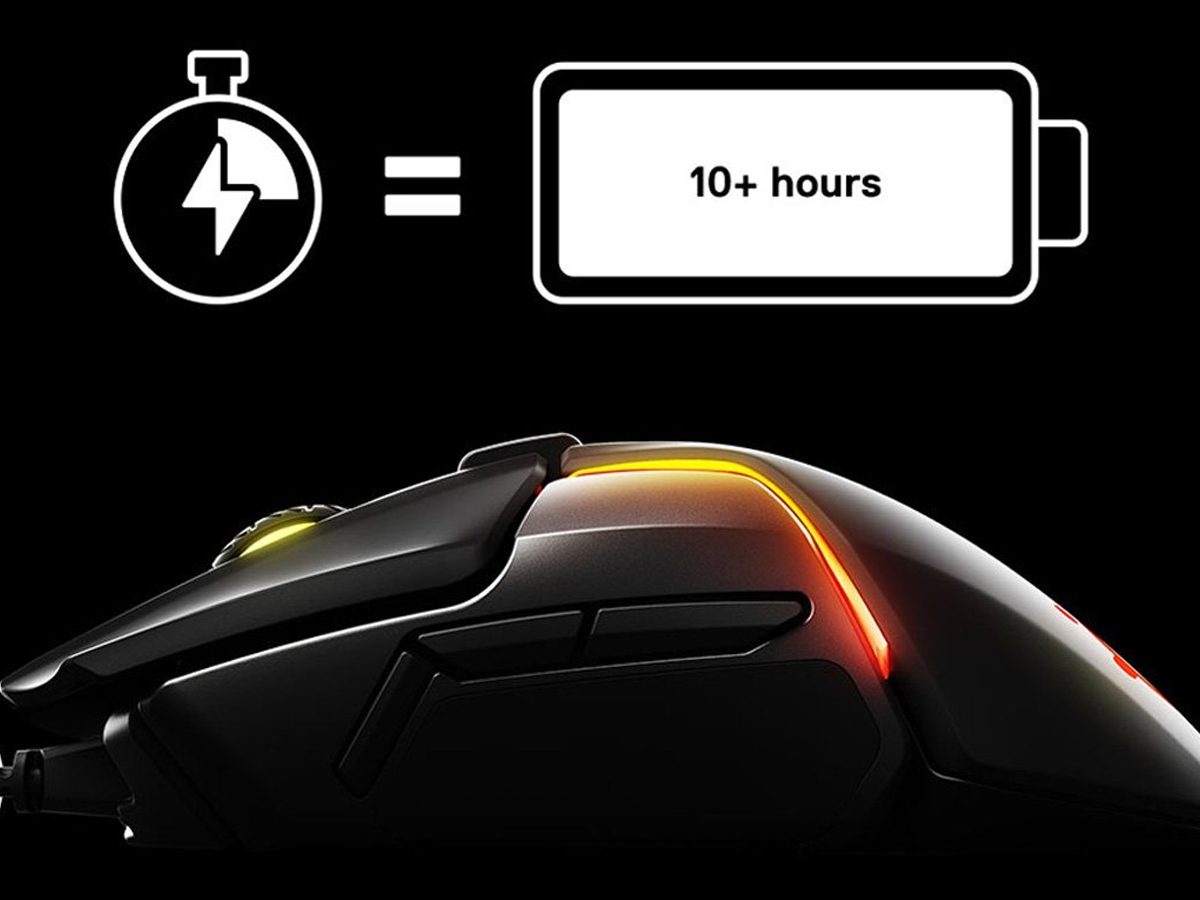 Mysz Rival 650 Wireless można naładować w mgnieniu oka. 15-minutowe ładowanie oferuje 10+ godzin grania. Nie będziesz już musiał podłączać myszki w środku rozgrywki.