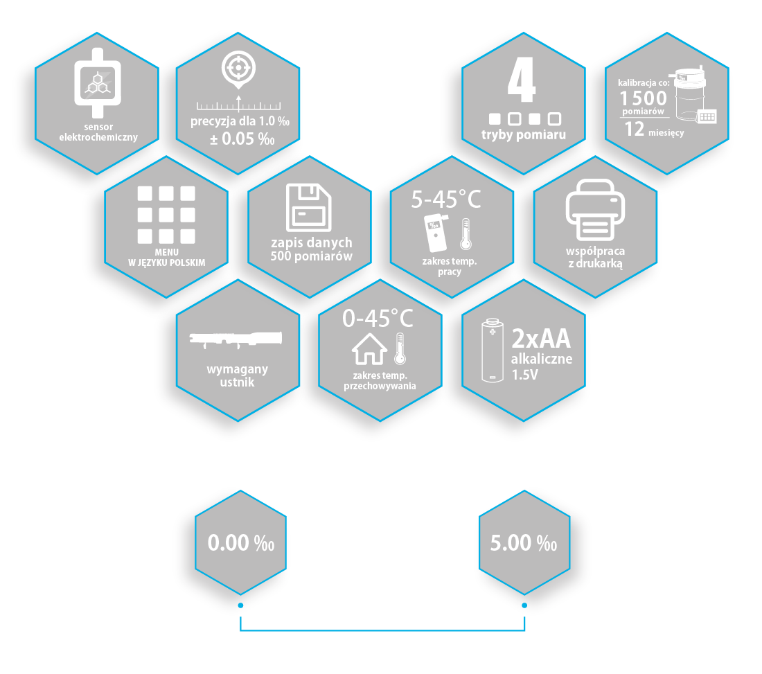 W centrum działania PROMILER ALP-1 LITE znajduje się innowacyjny sensor zapewniający dokładność do setnych części promila (dla 1‰ – margines błędu wynosi jedynie ±0,05‰). Wyniki uzyskiwane są błyskawicznie, co czyni urządzenie cenionym wyborem wśród profesjonalistów.