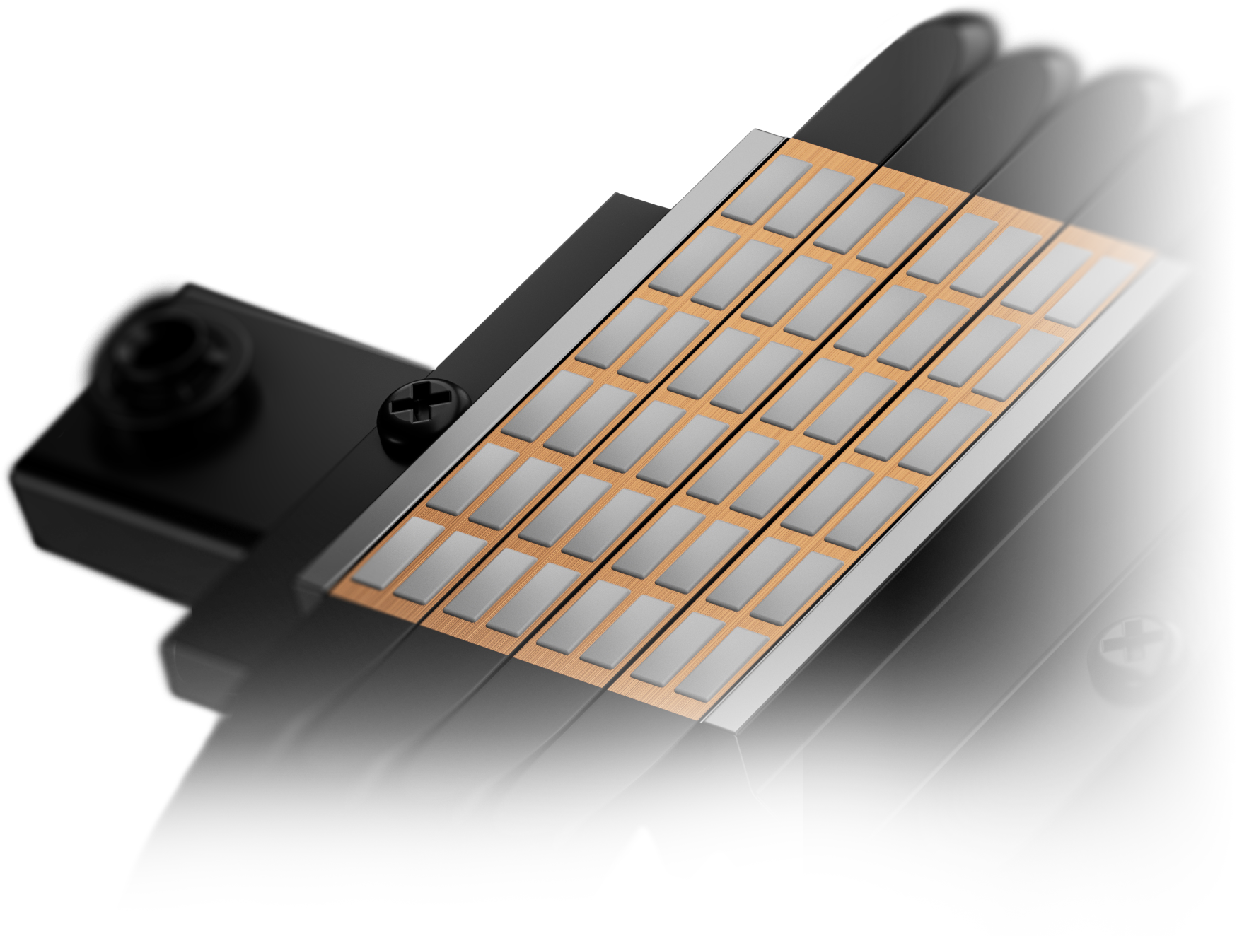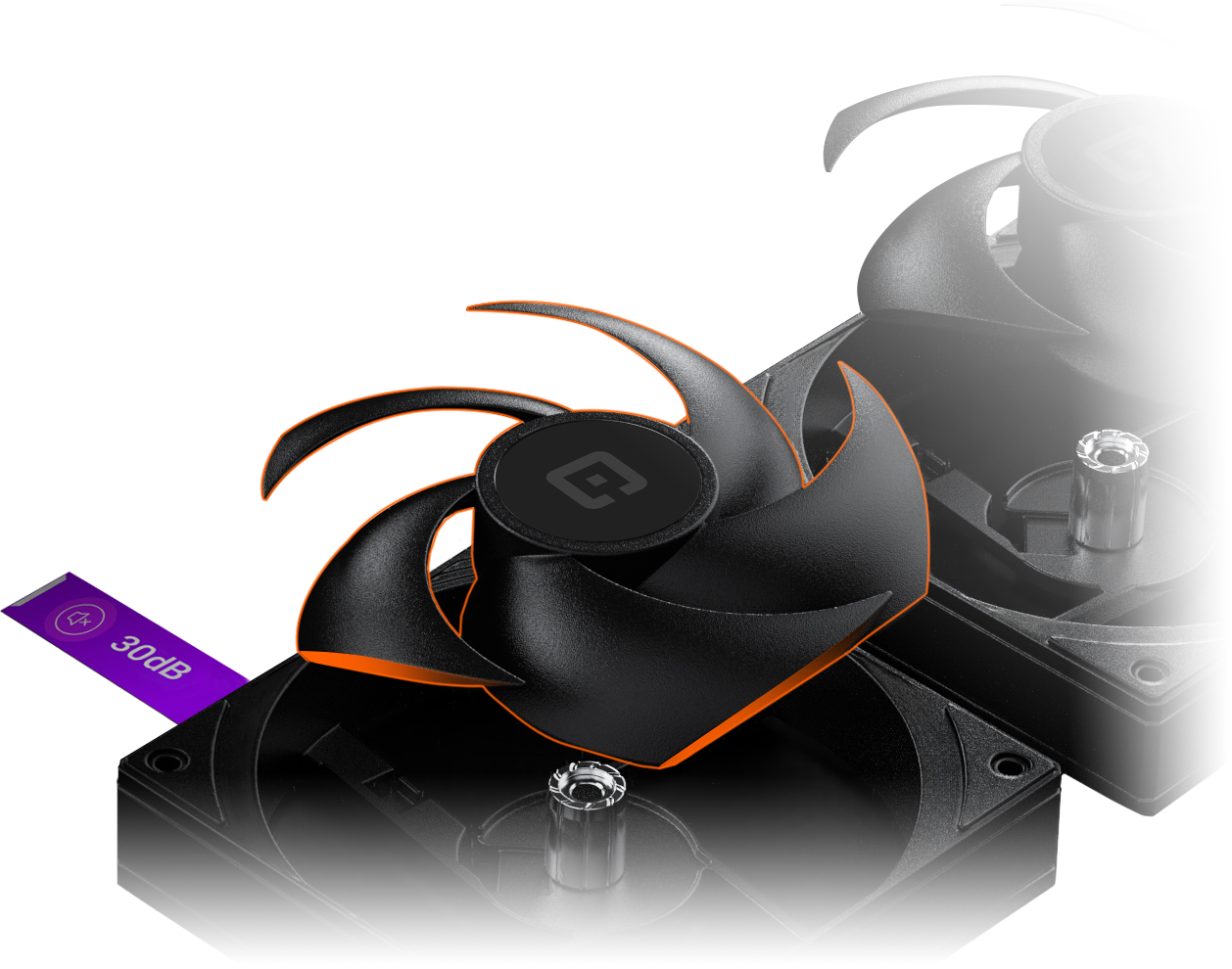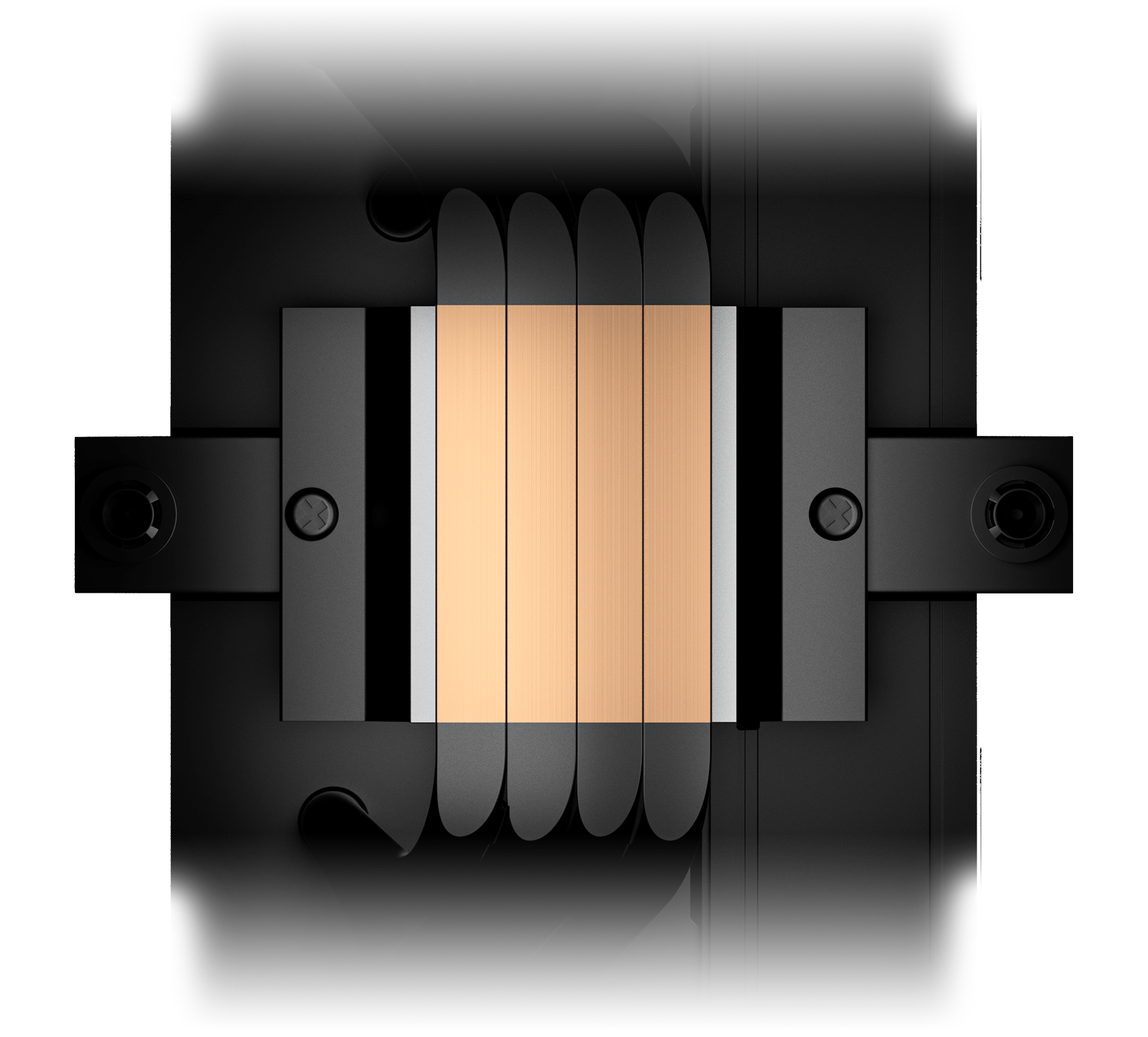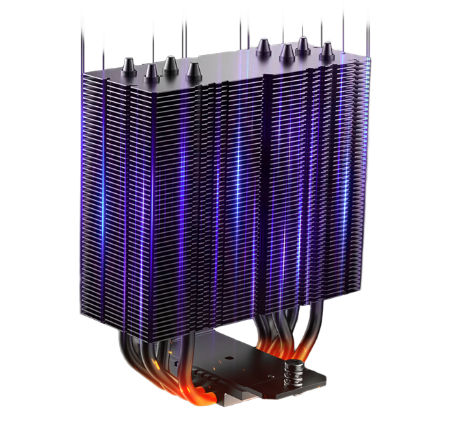 Cztery zaawansowane ciepłowody o średnicy 6 mm maksymalizują przewodnictwo cieplne. Precyzyjnie osadzone żeberka zapewniają szybkie rozpraszanie energii, zapewniając wysoką wydajność chłodzenia i niski opór termiczny.