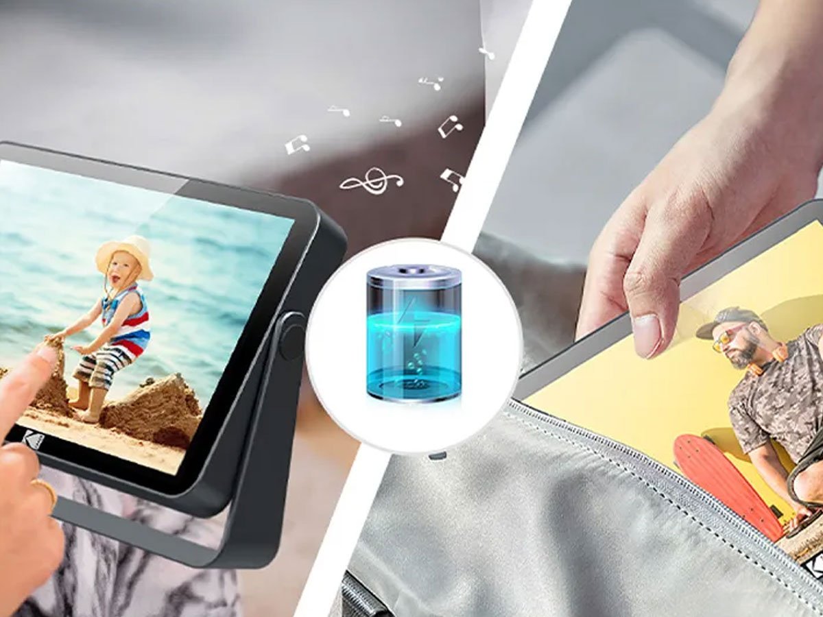 Ramka cyfrowa posiada wbudowaną baterię, która czyni ją wyjątkowo przenośnym urządzeniem. Możesz zabrać swoje ulubione zdjęcia i filmy w dowolne miejsce, niezależnie od dostępu do zasilania. To doskonałe rozwiązanie na rodzinne spotkania, prezentacje czy wyjazdy, gdzie chcesz dzielić się wspomnieniami w prosty i wygodny sposób.