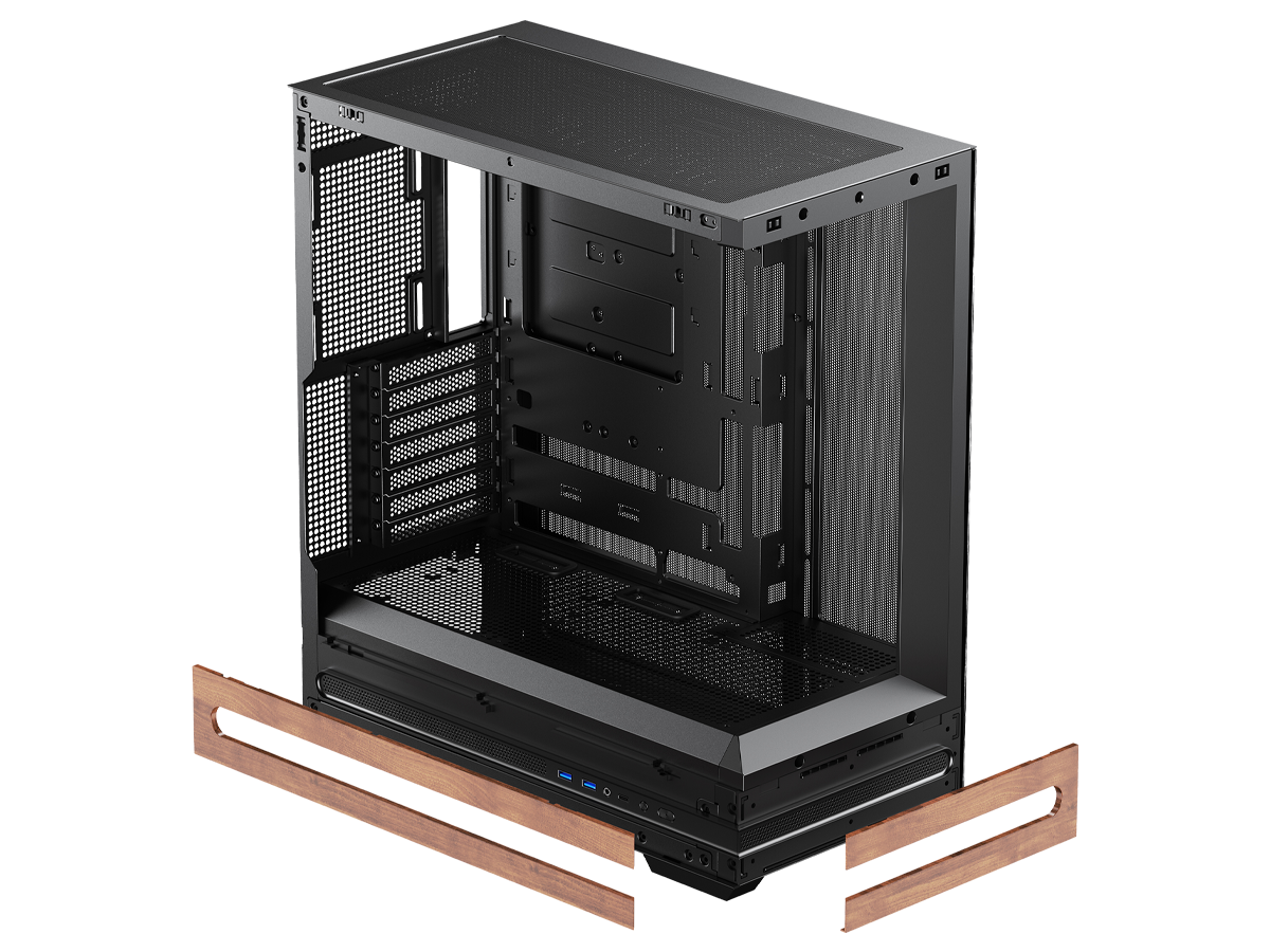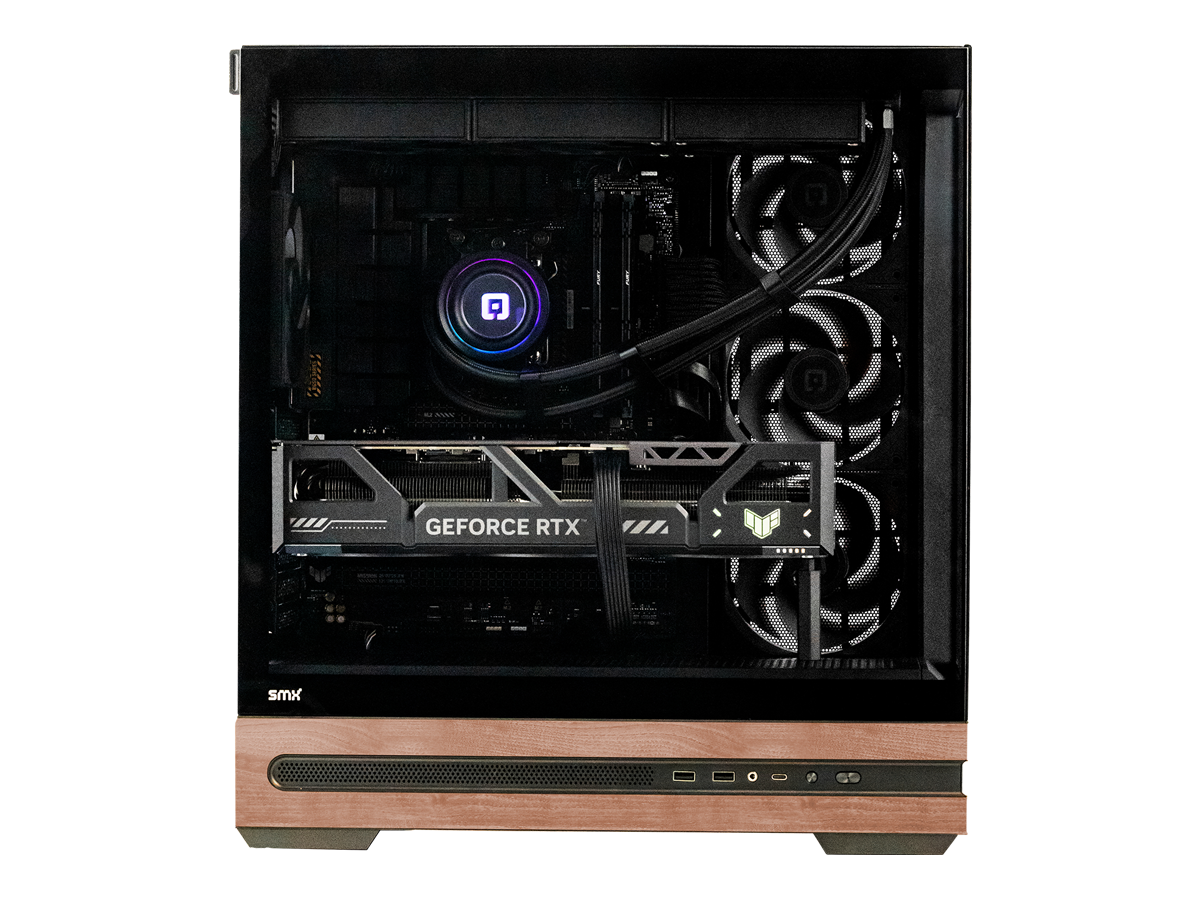 SMX Capsule to stylowa obudowa typu fishtank, wzbogacona o eleganckie elementy z drewna. Boczne szkło hartowane pozwala w pełni wyeksponować podzespoły i podkreśla unikalny charakter zestawu. To połączenie nowoczesnej formy z naturalnym wykończeniem sprawia, że obudowa wyróżnia się na tle tradycyjnych konstrukcji.