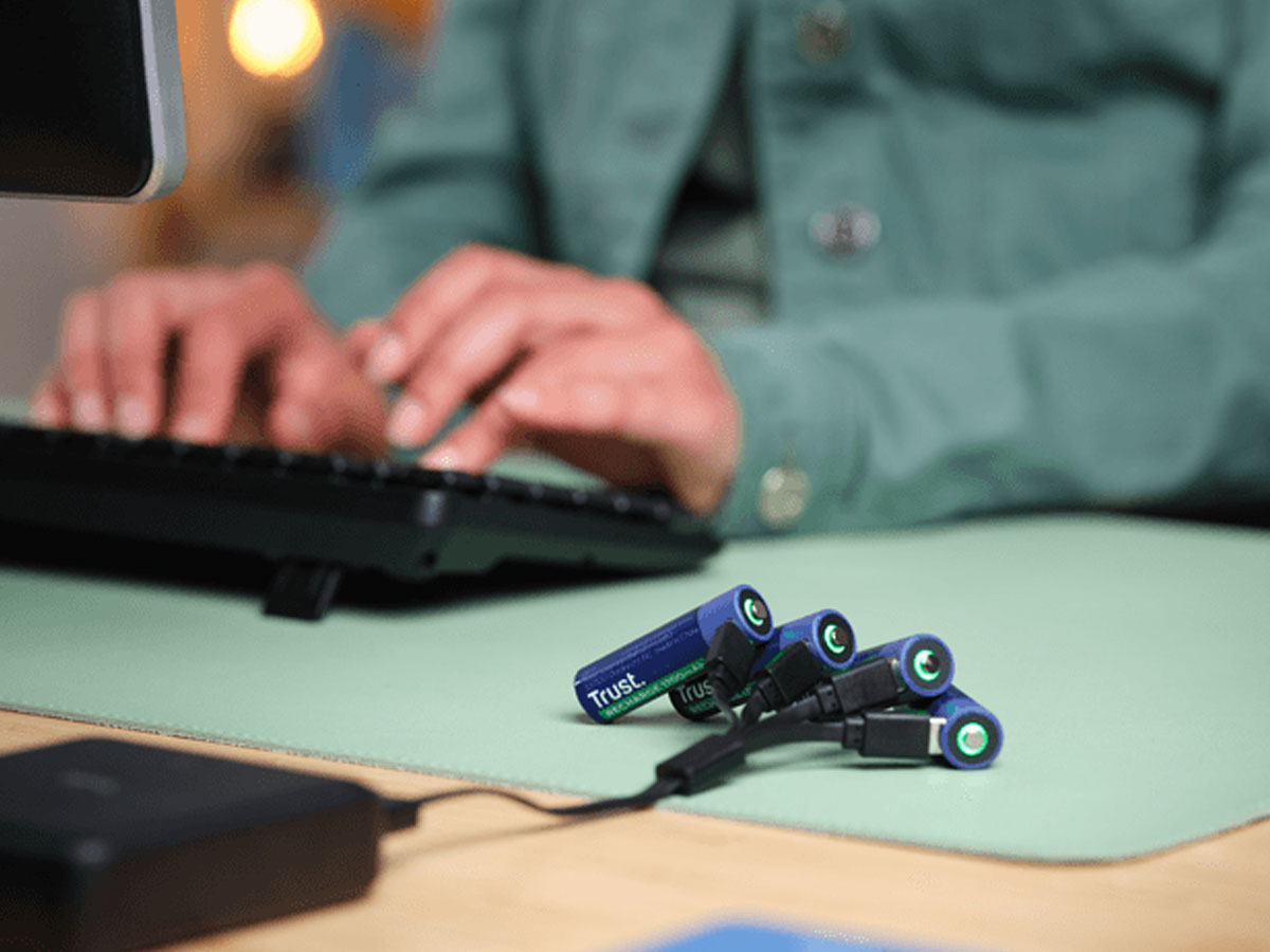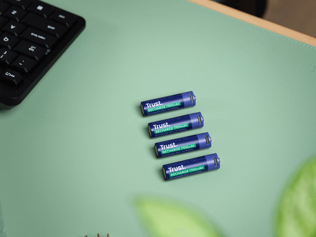 Miej zawsze energie dla różnorodnych urządzeń. Zestaw 4 akumulatorów AA Trust z możliwością ładowania przez USB-C zapewni Ci zrównoważone zasilanie.