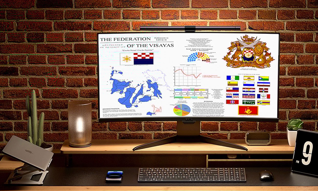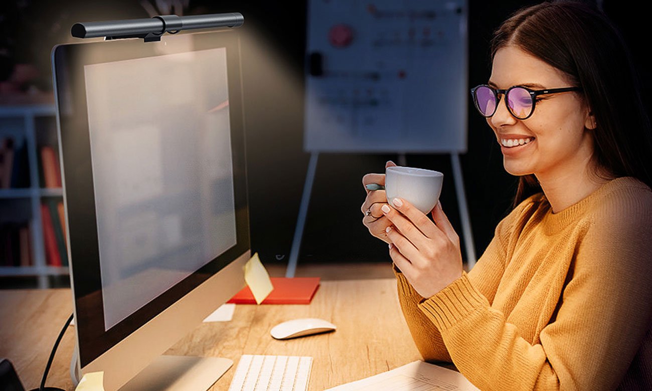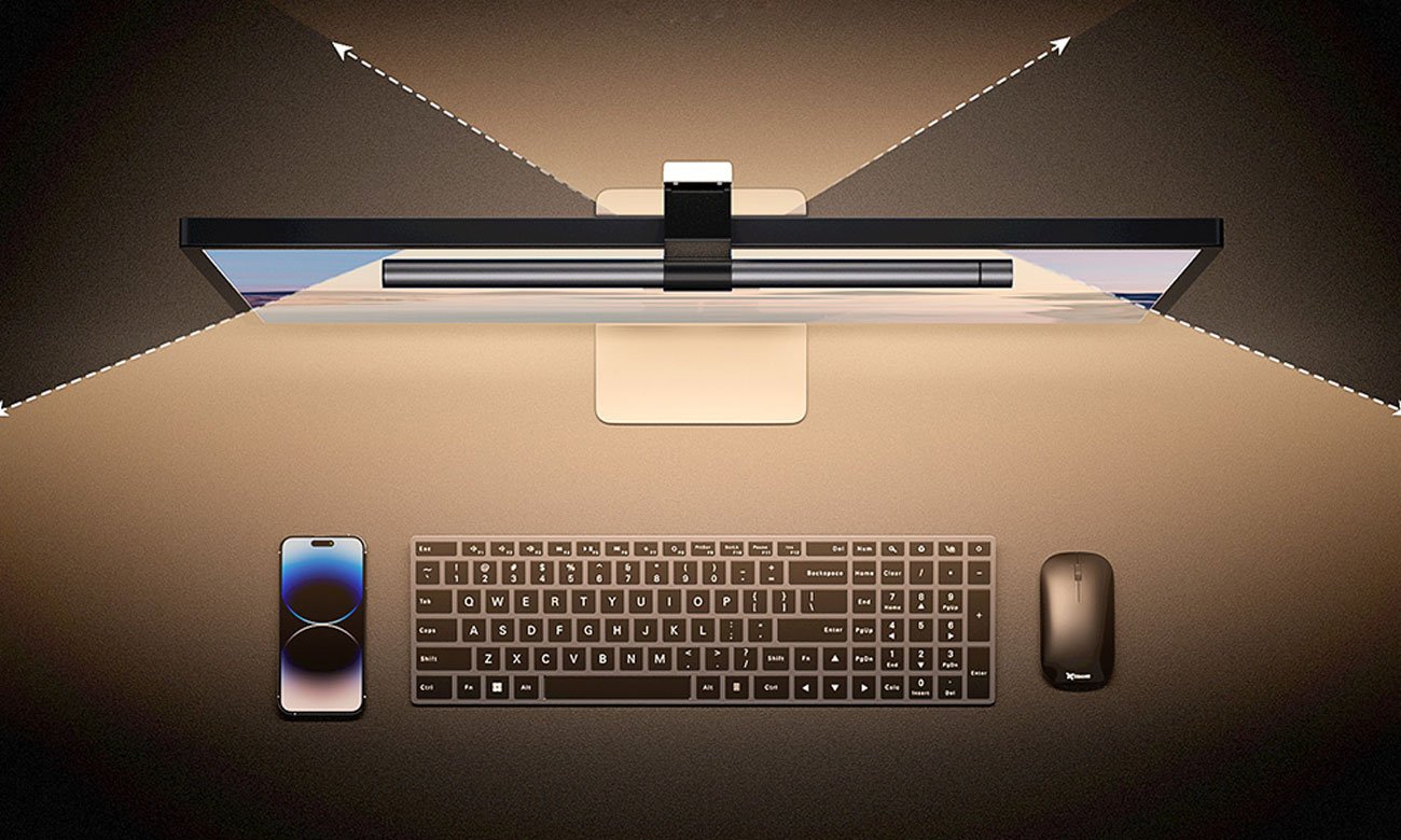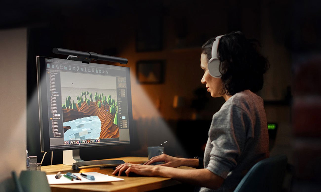 Lampa na monitor Elesense oferuje dwa źródła światła, które zapewniają zarówno doskonałą widoczność, jak i komfort, czyniąc pracę i rozrywkę komfortowym doświadczeniem. Tylne podświetlenie jest subtelne i gwarantuje wyjątkową atmosferę, podkreślając głębię kolorów i kontrastów na ekranie. Natomiast asymetryczne oświetlenie przednie zostało starannie zaprojektowane, aby podkreślić obszar biurka i klawiatury. Eliminuje przy tym uciążliwe odblaski, tworząc idealne warunki do koncentracji i twórczej pracy.