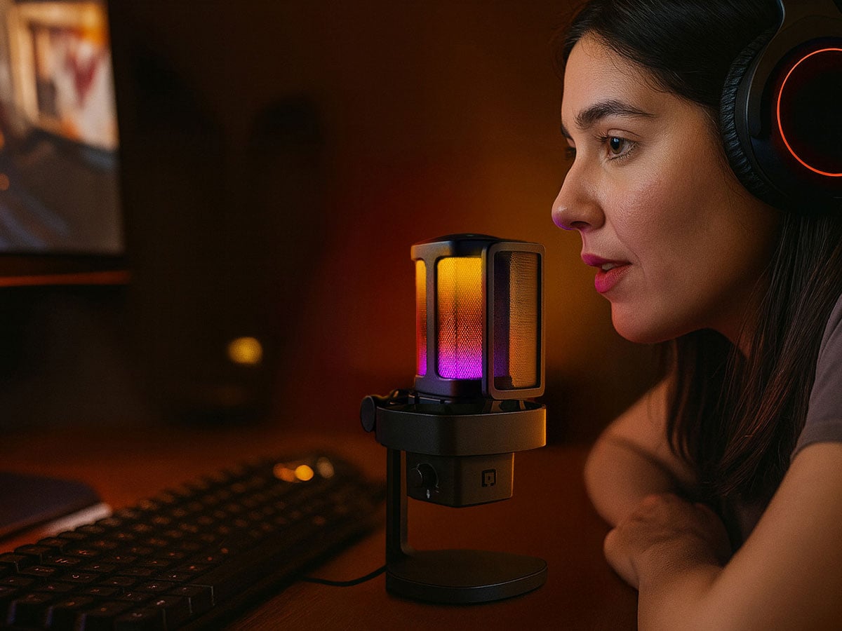 Nowoczesny design, obudowa ze stopu aluminium i konfigurowalne podświetlenie RGB sprawiają, że mikrofon świetnie prezentuje się na każdym biurku. Wbudowany kosz antywibracyjny i filtr pop gwarantują czyste, pozbawione zakłóceń nagrania. Złącze USB Type-C oraz dołączony adapter sprawiają, że możesz go podłączyć do wielu urządzeń.