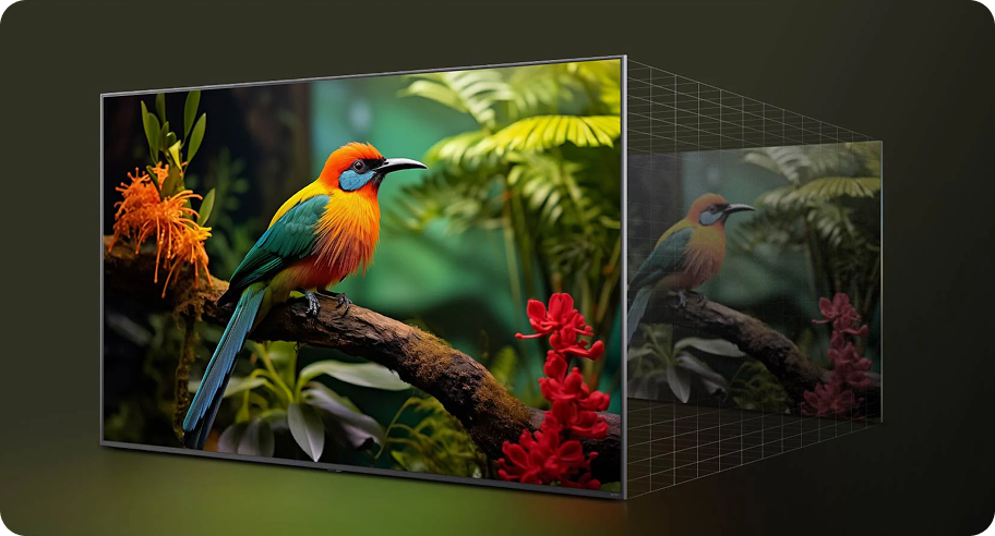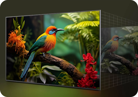 Przetwarzanie AI poprawia dźwięk telewizora, zapewniając mocniejsze wrażenia dźwiękowe.