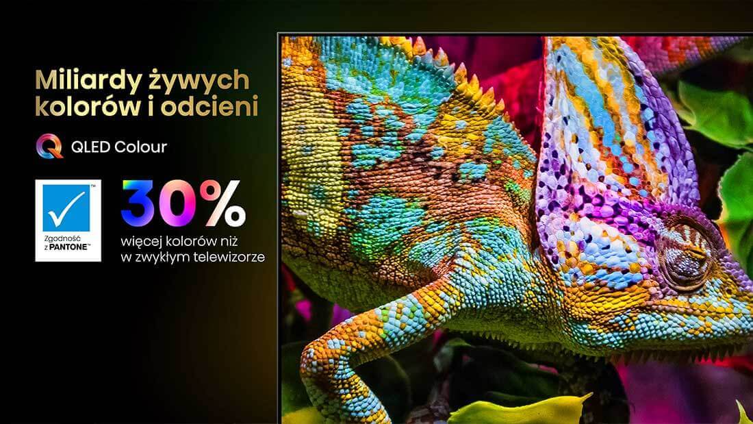 Poznaj niezwykłe możliwości technologii kropek kwantowych. Dzięki technologii QLED Quantum Dot każda scena na ekranie zachwyca bogactwem realistycznych, nasyconych i wyrazistych barw. Zobacz najdrobniejsze różnice w odcieniach i odkryj prawdziwe piękno kolorów.