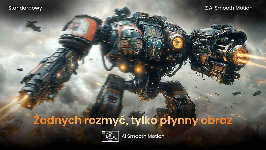 Telewizor Hisense z technologią AI Smooth Motion gwarantuje krystalicznie czysty i niezwykle płynny obraz, nawet w najbardziej dynamicznych scenach. Dzięki panelowi 144 Hz, technologii MEMC oraz redukcji szumów 3D każdy ruch jest odwzorowany z wyjątkową precyzją, bez efektu rozmycia. Funkcja AI Smooth Motion analizuje i optymalizuje każdy kadr w czasie rzeczywistym, eliminując zacięcia i smużenie obrazu. To idealne rozwiązanie dla graczy oraz miłośników sportu i kina akcji, którzy oczekują maksymalnej płynności i perfekcyjnej ostrości. Zanurz się w rozgrywce, która wygląda dokładnie tak, jak powinna – płynnie, ostro i bez zakłóceń.