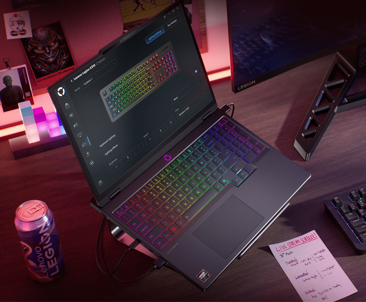 Mistrzowska precyzja dzięki klawiaturze Legion TrueStrike. Zaprojektowana dla użytkowników potrzebujących dokładności i elastyczności zarówno w grach jak i w pracy. Ta pełnowymiarowa klawiatura zawiera dedykowane klawisze strzałek, sekcję numeryczną i duży touchpad Mylar. Dzięki konfigurowalnemu 24‑strefowemu podświetleniu RGB zasilanemu przez Lenovo Spectrum i synchronizacji AI RGB za pośrednictwem Legion Space, możesz spersonalizować ją idealnie do swoich upodobań.