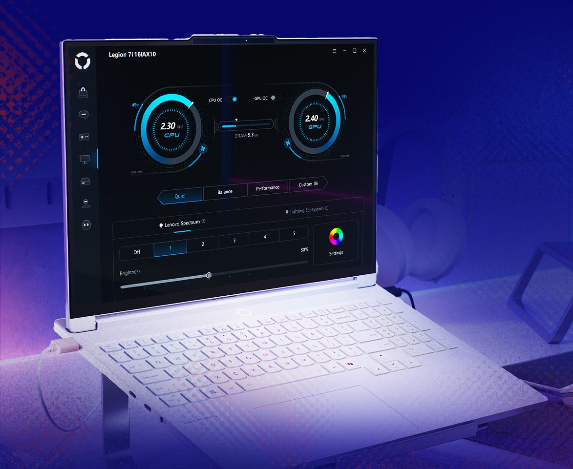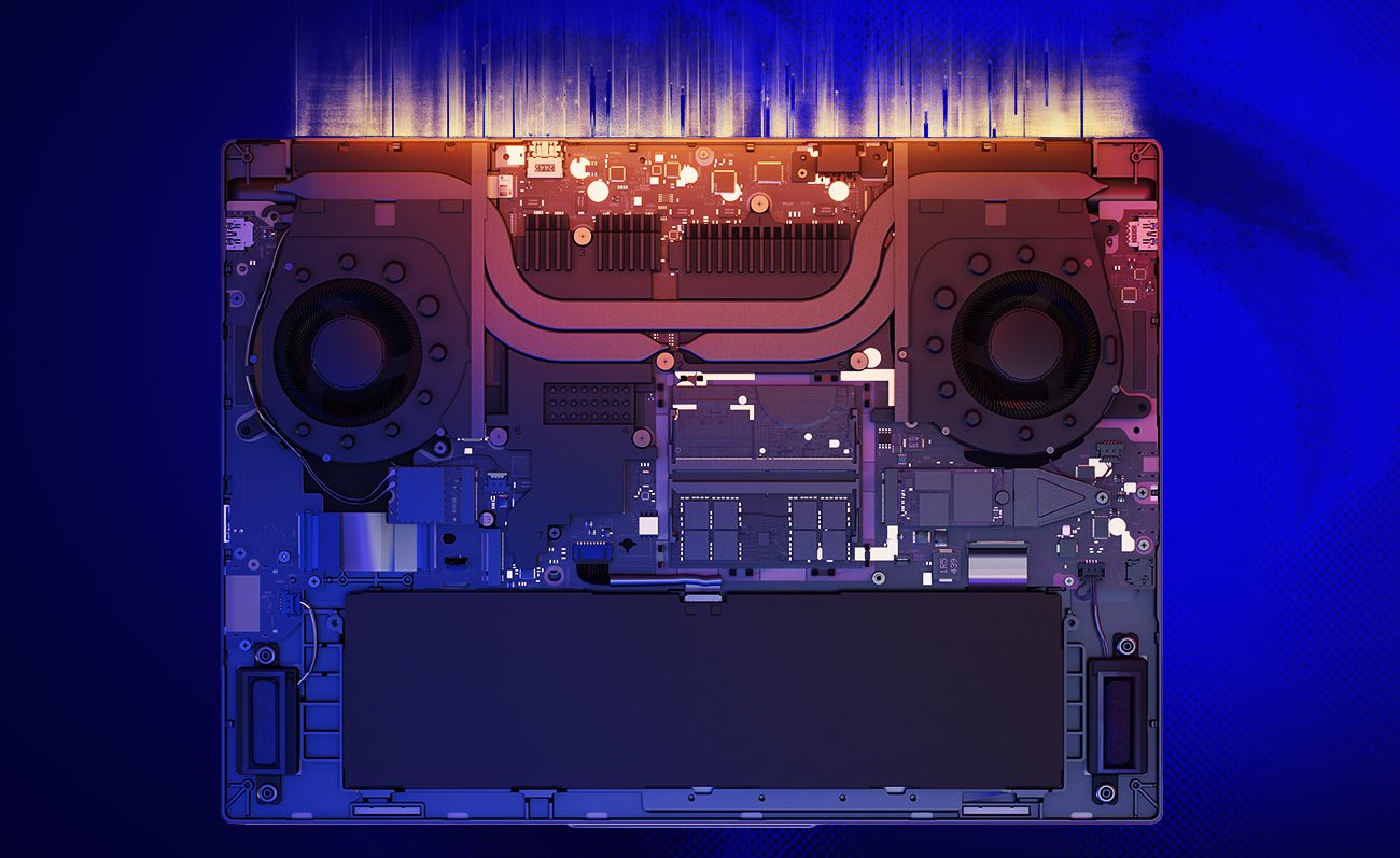 Odblokuj wydajność na najwyższym poziomie dzięki Legion Coldfront: Hyper, łączący turbodoładowane wentylatory i masywne miedziane heatpipe'y 3D, wszystkie uszczelnione próżniowo dla zoptymalizowanego przepływu powietrza, który kieruje ciepło z dala od Ciebie, utrzymując system chłodniejszy i cichszy. Bez wysiłku przełączaj się między trybami Quiet, Balance, Performance lub Extreme za pomocą klawiszy Fn+Q, aby dopasować je do swoich potrzeb związanych z grami, nauką lub renderowaniem. Lenovo AI Engine+ usprawnia dostrajanie wentylatorów z trybu Balance do trybu Performance dla długotrwałych obciążeń STEM. Turbodoładowane wentylatory typu stealth zaprojektowane z laserową precyzją, kierują chłodne powietrze na kluczowe komponenty, podczas gdy solidne miedziane rurki cieplne i aluminiowe radiatory zapewniają chłodzenie systemu. Acoustic AI Sound Sync optymalizuje wydajność w oparciu o rzeczywistą głośność dźwięku.