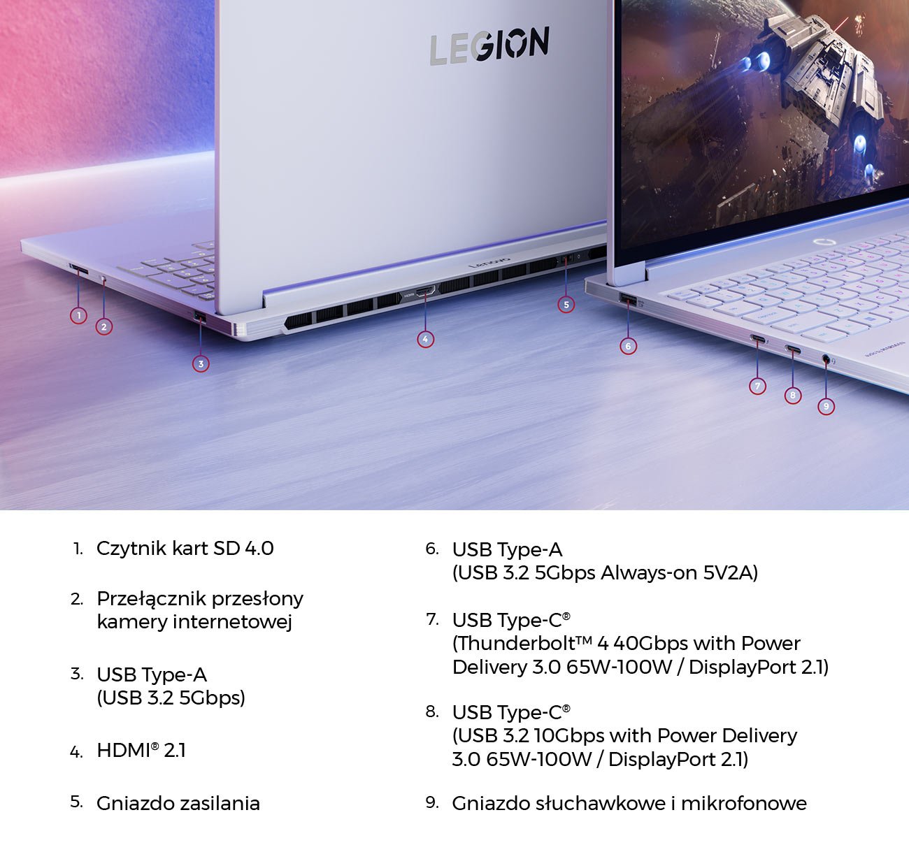 Wyświetlacze Lenovo PureSight OLED Gaming zapewniają wysoką jakość gier AAA, precyzyjne odwzorowanie kolorów podczas tworzenia treści, większy komfort dla oczu i dłuższy czas pracy na baterii. Ciesz się wysoką rozdzielczością, elastycznymi opcjami częstotliwości odświeżania, krótszymi czasami reakcji i oszałamiającym odwzorowaniem kolorów od razu po wyjęciu z pudełka. Wraz z oprogramowaniem Legion Space, masz również dostęp do narzędzi poprawiających Twój e‑sportowy performance, których celem jest redukcja czasu reakcji, wspomaganie celowania, konwersja gamy kolorów i inne. Dodatkowo, wyświetlacze Lenovo PureSight OLED oferują zaawansowaną technologię AI Smart Shift i Luminous Zone AI Management, automatycznie dostosowując częstotliwość odświeżania, jasność i gamę kolorów. Ponadto technologia Anti‑Burn‑In zapewnia, że gry i treści pozostaną żywe przez wiele lat.