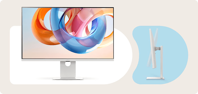 Konstrukcja bez obramowania z 3 stron i smukła, biała obudowa, w