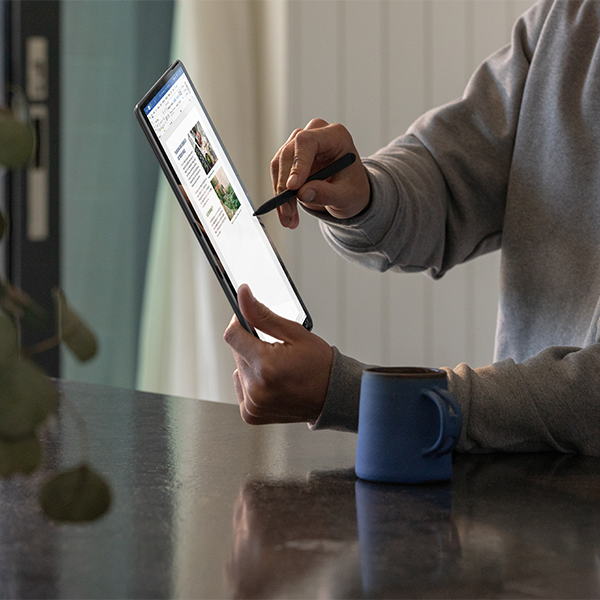 Poznaj przyszłość wydajnej pracy z zawsze dostępną, niesamowicie szybką łącznością LTE1. Gdziekolwiek zawiedzie Cię życie, będziesz o krok do przodu dzięki niezwykle smukłemu i eleganckiemu komputerowi Surface Pro X.