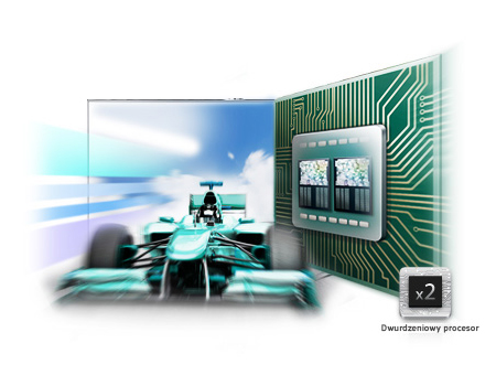 Szybki, wielozadaniowy procesor dwurdzeniowy Szybsza praca dwurdzeniowego procesora pozwala na wykonywanie wielu zadań jednocześnie, np. korzystanie z aplikacji podczas pobierania kolejnej. Umożliwia także szybsze przeszukiwanie sieci podczas gry lub programów telewizyjnych niedawno otwieranych za pomocą funkcji Ostatnio oglądane. |
