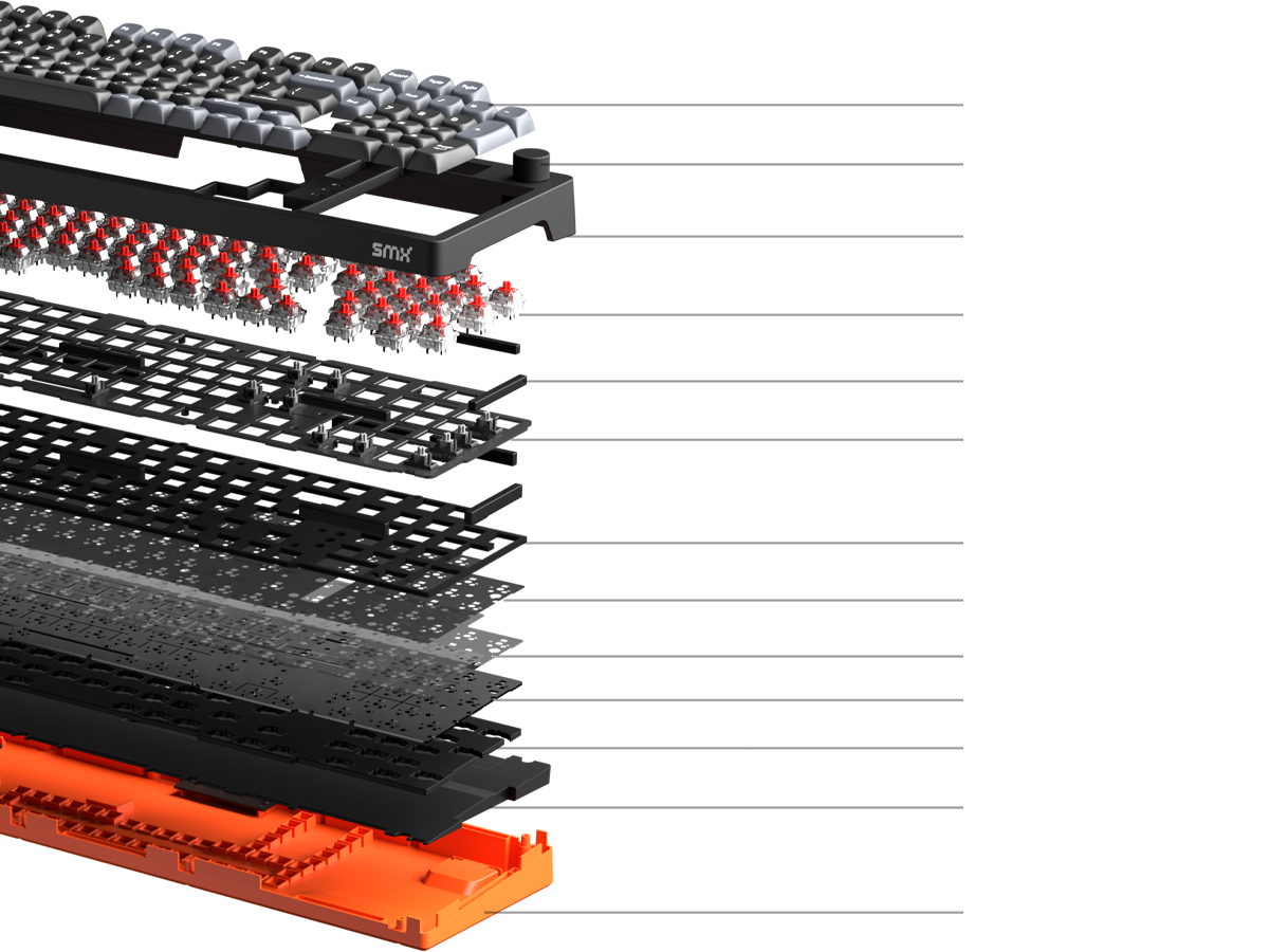 Klawiatura mechaniczna SMX Sanshu Nougat Switch Carbon ignite działa pewnie, cicho i z wyjątkowym wyczuciem pod palcami. Każdy detal, od przełączników po konstrukcję, został zaprojektowany tak, by dać Ci pełną kontrolę bez niepotrzebnych rozproszeń.