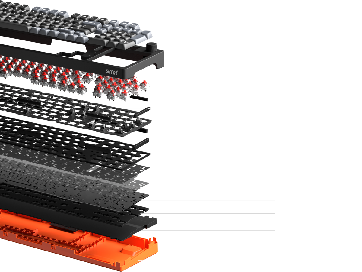 Klawiatura mechaniczna SMX Sanshu Nougat Switch Carbon ignite działa pewnie, cicho i z wyjątkowym wyczuciem pod palcami. Każdy detal, od przełączników po konstrukcję, został zaprojektowany tak, by dać Ci pełną kontrolę bez niepotrzebnych rozproszeń.