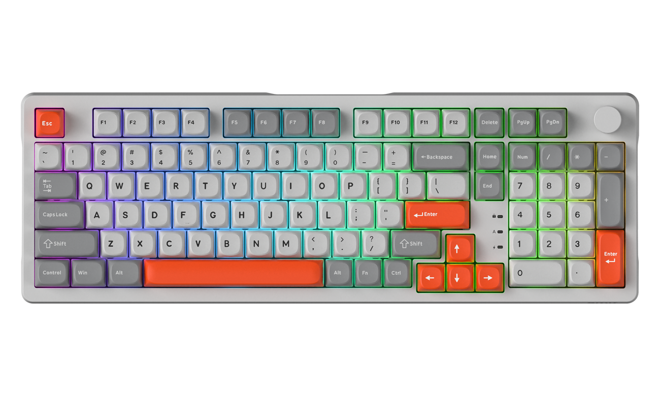 Podświetlenie RGB z południowym układem LED-ów wygląda naturalnie nawet przy nieprzezroczystych keycapach, a całość można konfigurować z poziomu przeglądarki, bez konieczności instalowania dodatkowego oprogramowania. Obudowa skręcana na śruby daje poczucie solidności, a jednocześnie zachęca do rozbierania i modowania bez stresu.