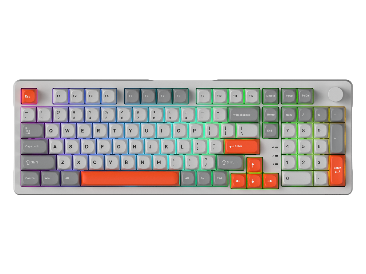 Dopełnieniem wrażeń są pomarańczowe keycapy PBT z profilem MDA — trwałe, odporne na ścieranie i przyjemne w dotyku. Ich ergonomiczny, klasyczny kształt idealnie współgra z charakterem Nougatów, a subtelne odniesienie do pomarańczowego spodu obudowy tworzy spójną, wyrazistą całość.