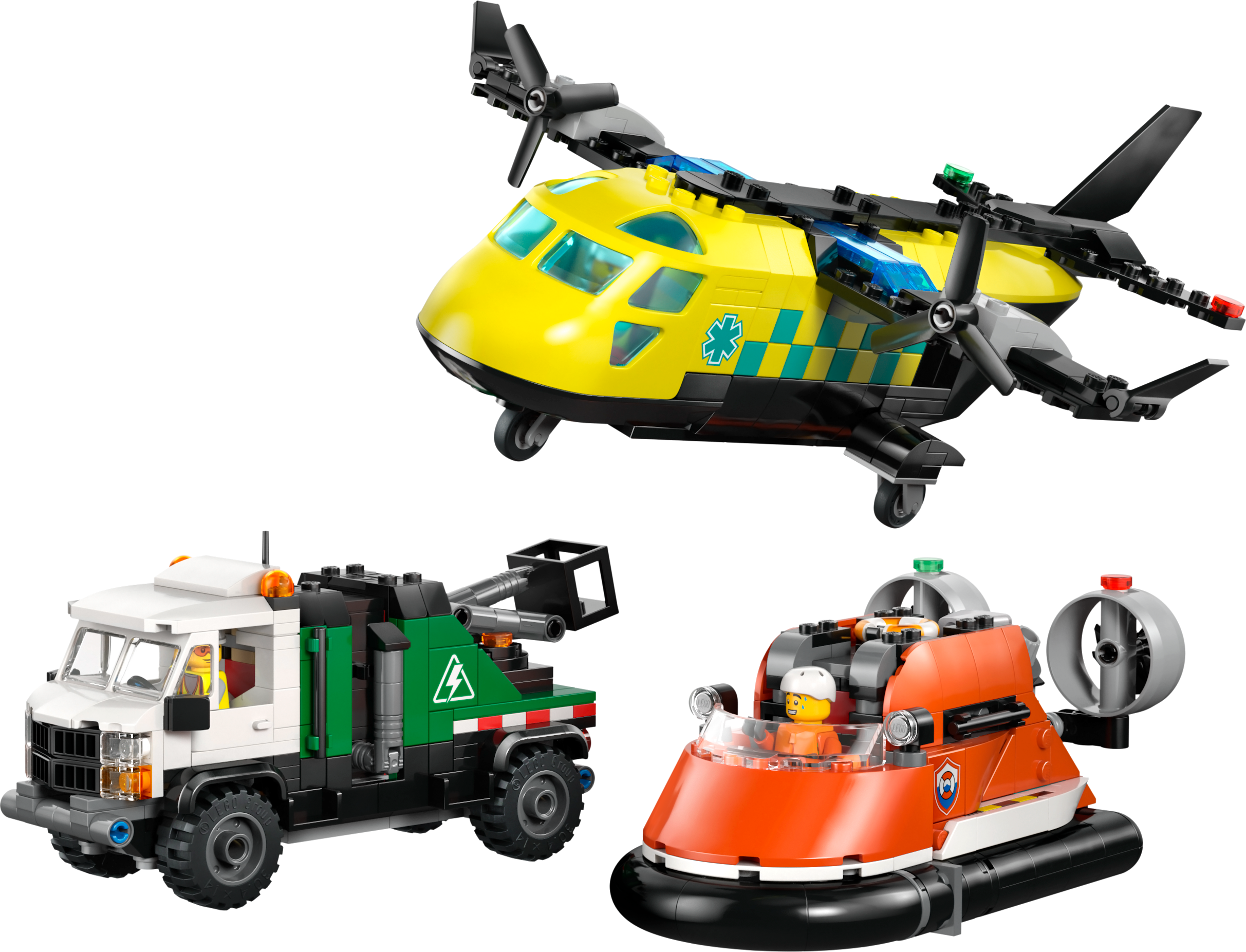 LEGO® City Zestaw z samolotem, ciężarówką serwisową i poduszkowcem – ratunkowe misje bez granic
