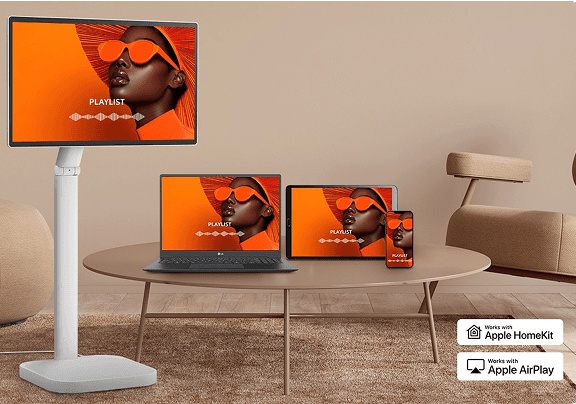 *Aby korzystać z AirPlay i HomeKit z tym monitorem, zalecana jest najnowsza wersja iOS, iPadOS lub macOS. Apple, AirPlay i HomeKit są znakami towarowymi firmy Apple Inc. zarejestrowanymi w Stanach Zjednoczonych oraz innych krajach i regionach. Oznaczenie Works with Apple Home jest znakiem towarowym firmy Apple Inc.