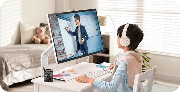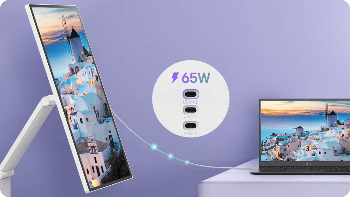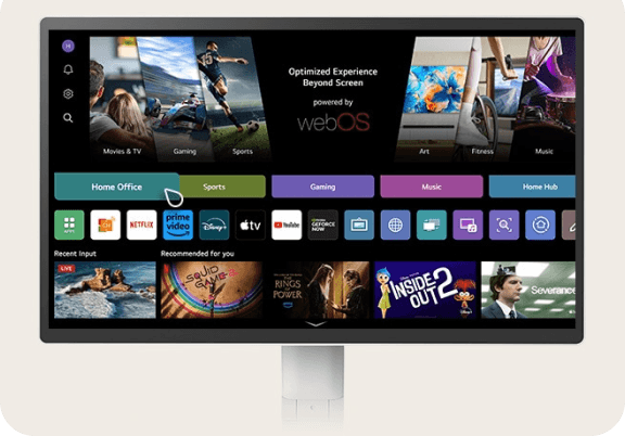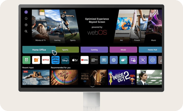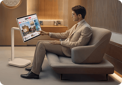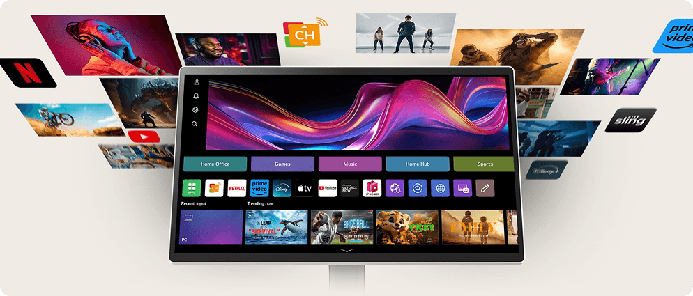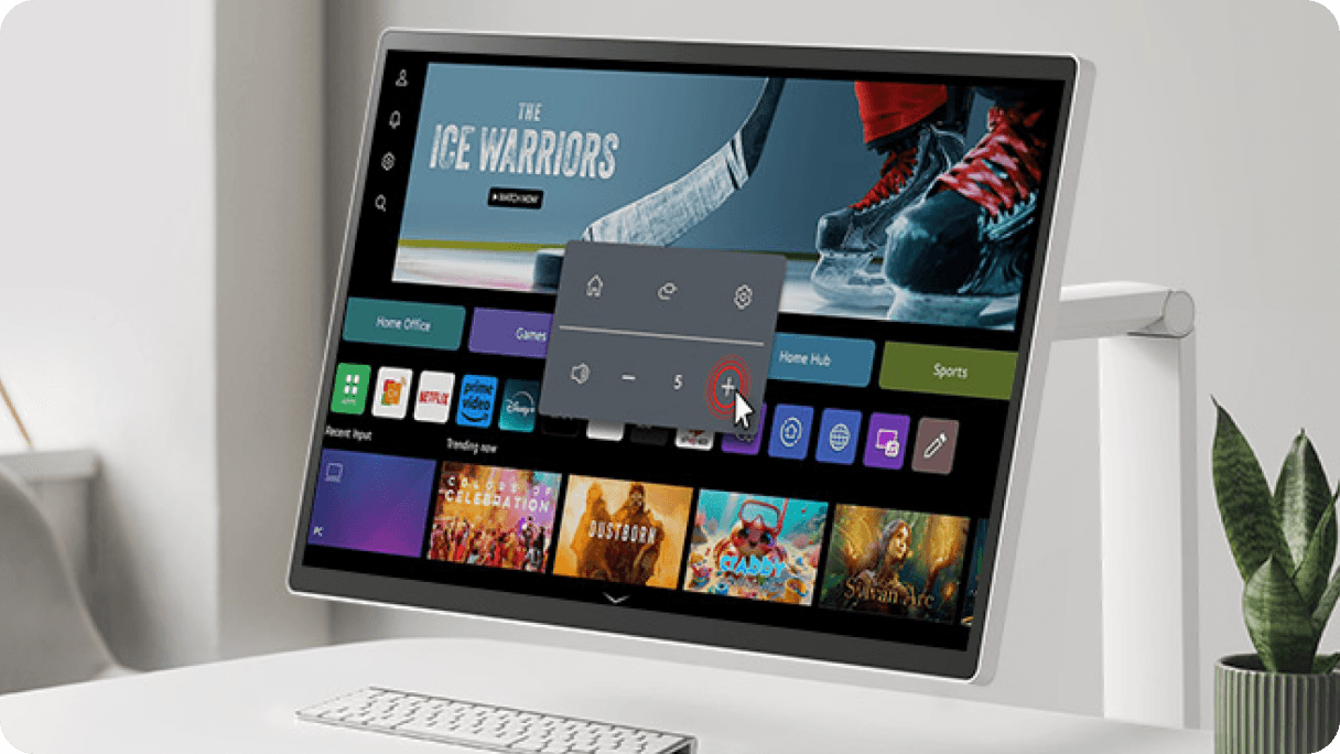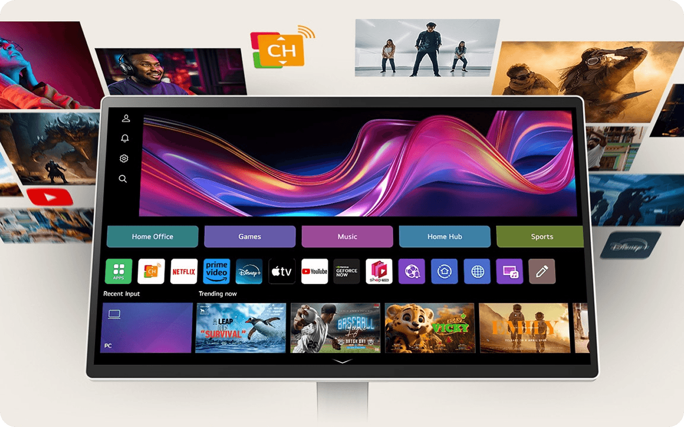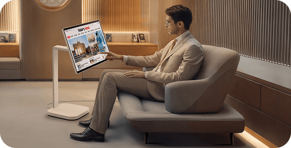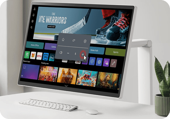 Dostosuj się do każdego zadania lub środowiska dzięki licznym funkcjom. Dzięki systemowi webOS możesz zarządzać zadaniami w domowym biurze bez komputera i cieszyć się bogactwem treści, płynnie łącząc pracę z rozrywką. Ponadto intuicyjny ekran dotykowy i wygodna podstawka zwiększają produktywność, oferując łatwą kontrolę i dynamiczną regulację.