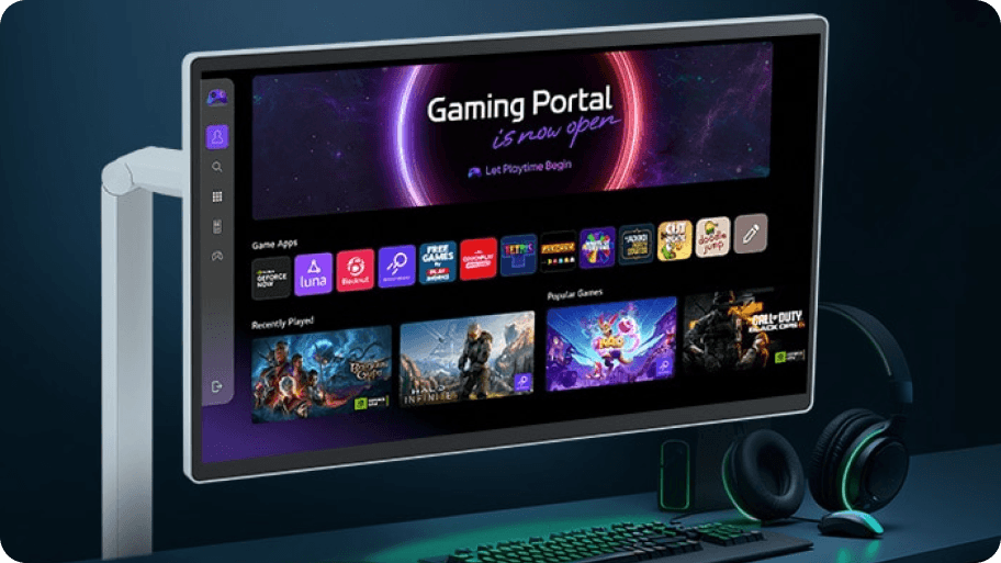 Nie potrzebujesz konsoli do gier - graj w gry za pośrednictwem LG Smart Monitora. Uzyskaj dostęp do gier w chmurze bezpośrednio z domu i szybko łącz się z aplikacjami do streamingu gier.